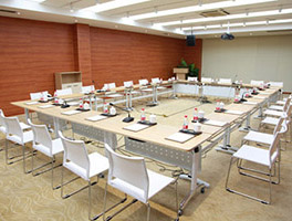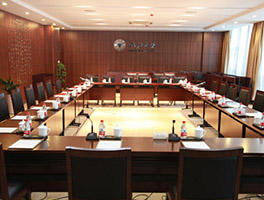 玉泉图书馆会议室,可容纳120人以下的会议,会议桌不可以移动,备有投影仪及其他常用会议设施。