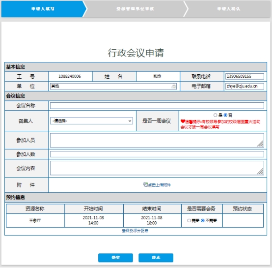 方式一:校内工作会议,表格填写。目前校内工作会议增加一项院级单位领导审核,由于会议系统没修改完成,需要老师持加该所属部门公章的场馆使用申请单后方可使用场馆。纸质版校内工作申请表会务可通过老师邮件给老师。