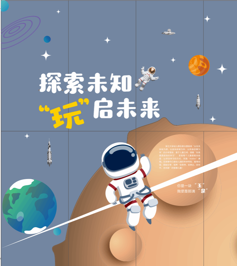 详情介绍:原浙江大学幼儿园,创建于 1953年,坐落于杭州市西湖区求是村内。是省一级幼儿园、省示范性幼儿园、省教科研先进集体、省青年文明号、市甲级幼儿园、市合格教科室等荣誉称号,是全国《新纲要》、浙江师范大学杭幼师学院人才实践基地、教育部幼儿园园长培训中心学员实践教学基地。 现有教职工100人,幼儿500余名。玉泉分园maker课程基于“做中学、玩中创”理念,培养“会思考、会表达、会协作、会创造”的智慧儿童。园区提倡“玩是最高级别的学习”,基于儿童视角,创设了科学梦想家系列、未来社区梦想家系列、自然梦想家系列等学习场,以此打造一所开放、自主、创新的探索乐园,凸显“生活为源、游戏为伴、发展为本”课程文化,以“浙大游学日”、“创玩日”、“创客节”等为载体开展了浙大特质课程建设,支持儿童健康和谐发展。