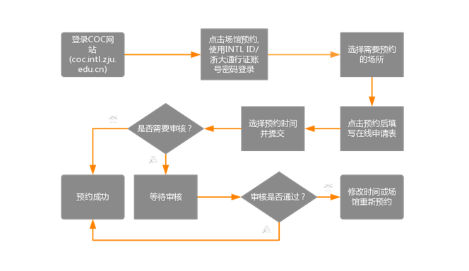场馆预约流程 持有校园ID的师生如需借用场所进行讨论、会议、活动等,均可在校园运营服务网(网址:http://coc.intl.zju.edu.cn/zh-hans/venue_booking)进行相关场所的预约。通过预约系统可对教学楼讨论室、文理楼会议室、书院讨论室和其他功能房进行预约。国际校区以外的人员如需要预约校区在校园开放初期,场所会根据实际情况开放。