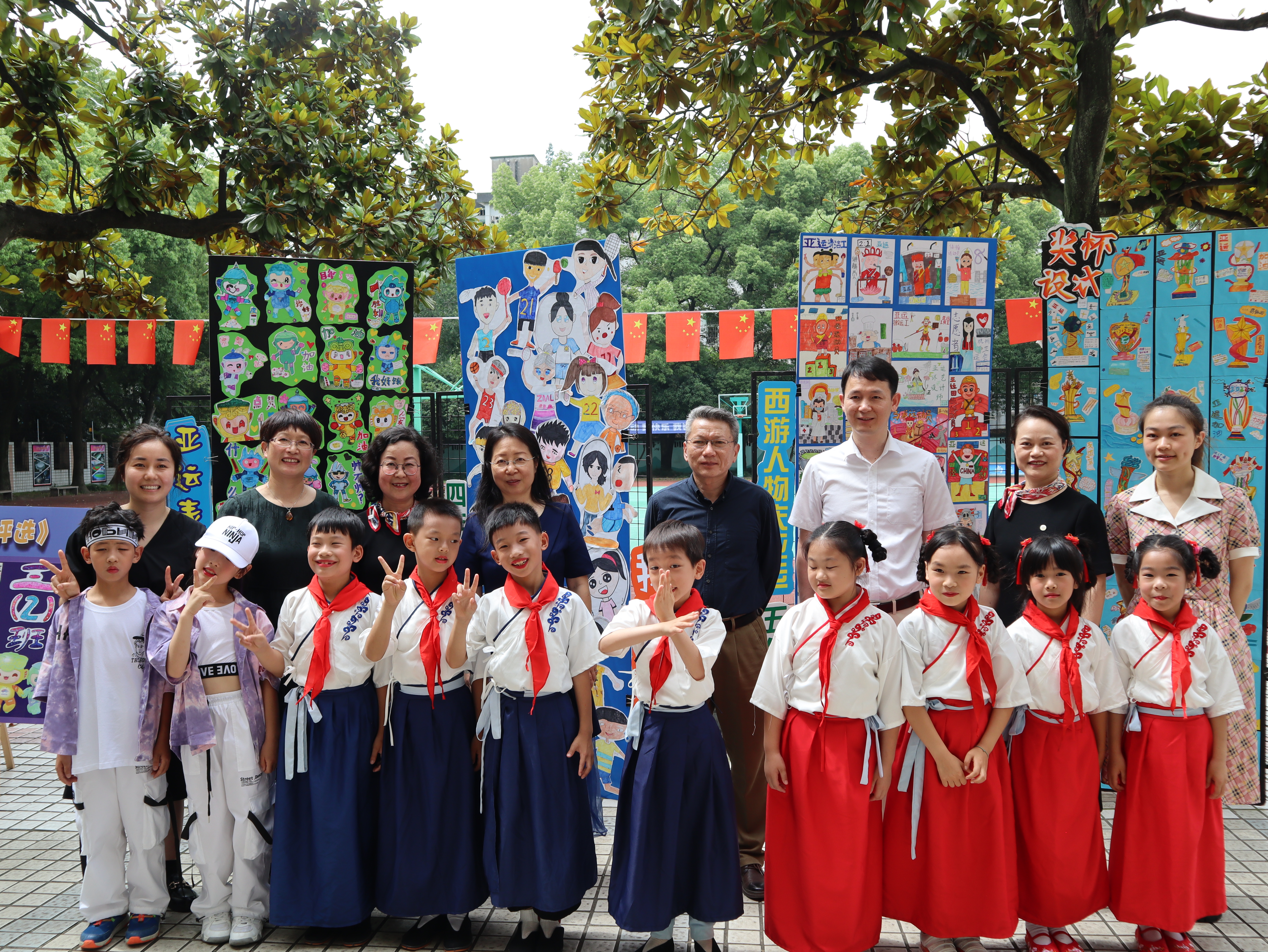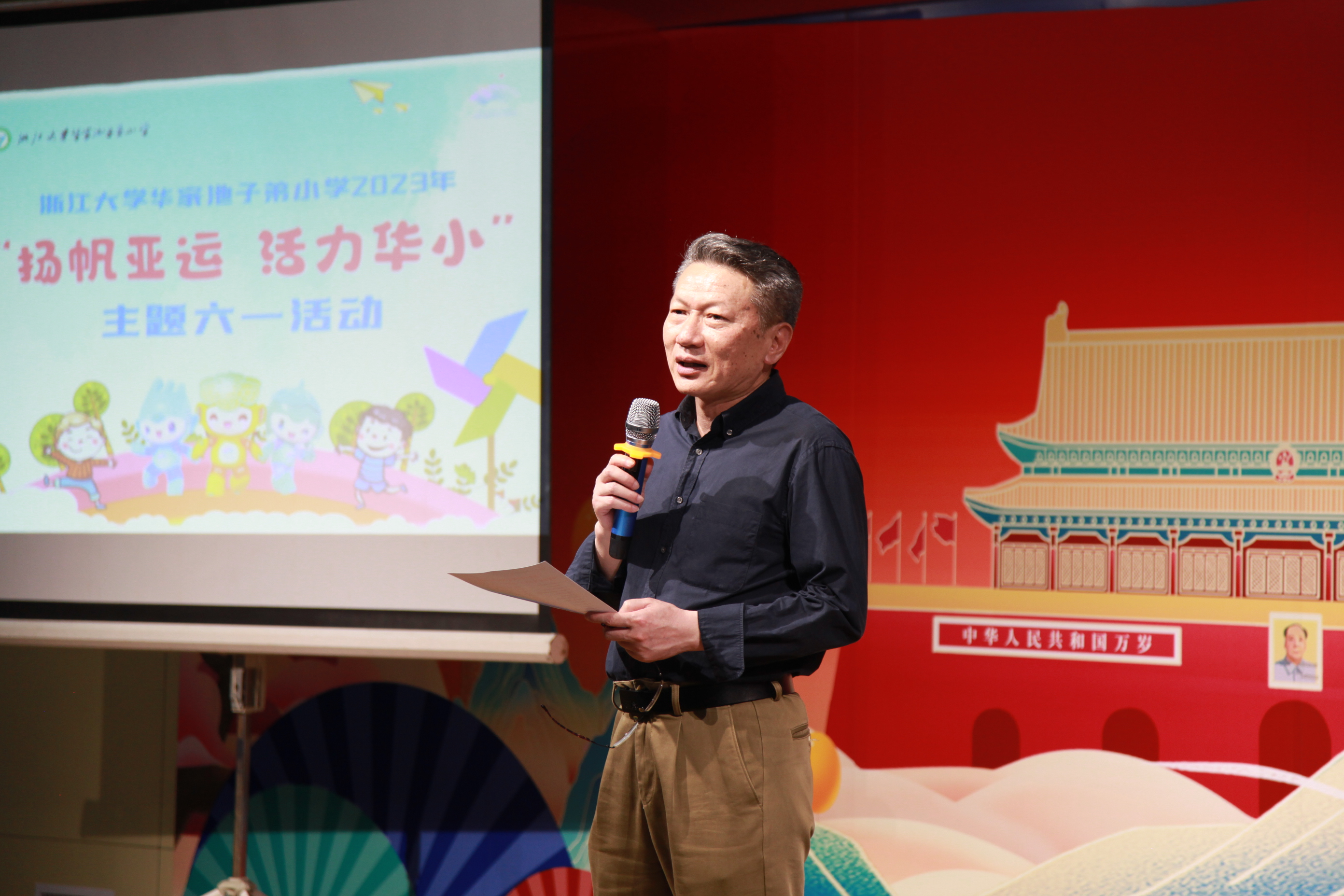 华家池分园“乐享两‘YUN’ 玩转六一”活动开幕式上,稚嫩童声将宋韵诗词演绎得动人真诚;“扬帆亚运 活力华小”主题作品展与文艺汇演,引得众人由衷赞叹孩子们无穷的想象力、创造力;热火朝天的西溪集市,兴致昂扬的幼儿园“水仗”,快乐气氛满溢校园!万春根为孩子们送上暖心祝福,并表示“六一”节活动的童趣与童智给人留下了深刻的记忆,“亚运”主题创意展则体现了孩子们的志向高远与脚踏实地,美好成长离不开老师们的辛勤付出与家长们的合作支持!