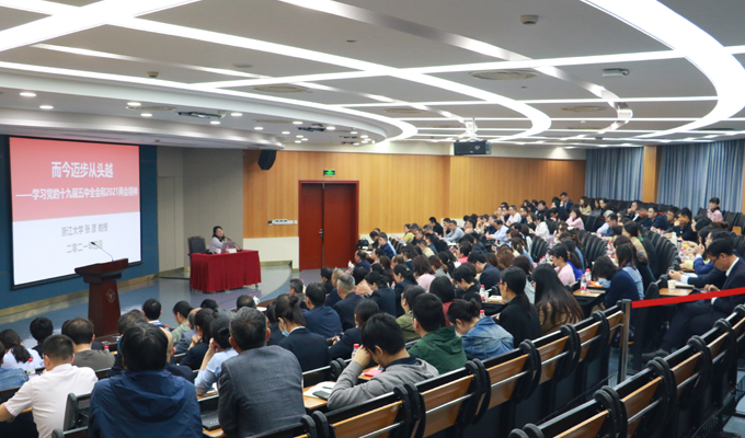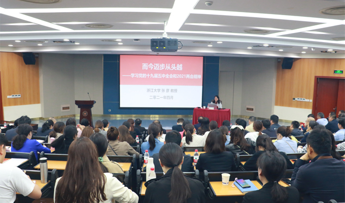4月27日下午,后勤集团在紫金港校区蒙民伟楼举行学习贯彻党的十九届五中全会精神专题报告会。浙江大学党史学习教育宣讲团成员、社会科学研究院副院长张彦教授应邀作题为《而今迈步从头越——学习党的十九届五中全会和2021“两会”精神》的专题报告,后勤集团党委书记万春根主持报告会。