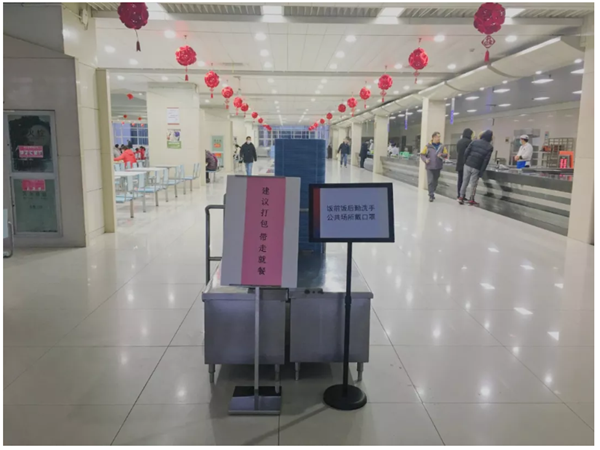 食堂大厅内设立提示牌
