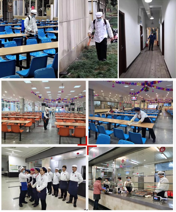 食堂不仅是学校假期正常运行的重要保障,也是就餐期间人群高度密集的公共空间。新型冠状病毒感染的肺炎疫情发生以来,饮食服务中心高度重视,严格落实防控措施,加强员工学习与宣教,全面及时掌握员工动态信息,严格执行汇报制度。面对服务保障与疫情防控的双重压力,饮食中心于1月22日召开疫情防控专题工作会议进行工作部署,要求假期管理人员保持联络畅通,各部门保持运转,外出严格报备。管理链条畅通,是疫情防控的首要前提。对此,饮食中心管理人员带头取消假期外出计划,管理团队联络畅通,在杭在岗待命。严格落实员工上岗洗手消毒和食堂场所(特别是大厅)的消毒工作,要求各食堂严格执行相关消毒工作,并做好消毒记录,每天对后厨、售菜间、就餐区域实行三次消毒;食堂各服务窗口人员(包括售卖人员、保洁人员和校园卡服务人员等)全部佩戴医用口罩和一次性手套,一餐一换;设立废弃口罩专用回收点,避免二次污染;在食堂就餐大厅内设立提示牌,提醒就餐人员佩戴口罩。肉蛋等菜品加工必须烧熟煮透,烹饪温度要求执行到位,不得售卖生食凉菜等;各食堂和校园卡窗口,根据学校和疾控等相关要求,做好了防控的宣传张贴工作。做好口罩、消毒用品的采购供应工作,严格动物类产品的进货渠道管理,严格做好索证索票工作,确保来源正规,检验检疫票证齐全;供应商进入校园,严格遵守校园规定,相关人员要佩戴口罩,做好防护,异常人员不得配送,要求供应商做好自身场地设备的消毒防护等工作。