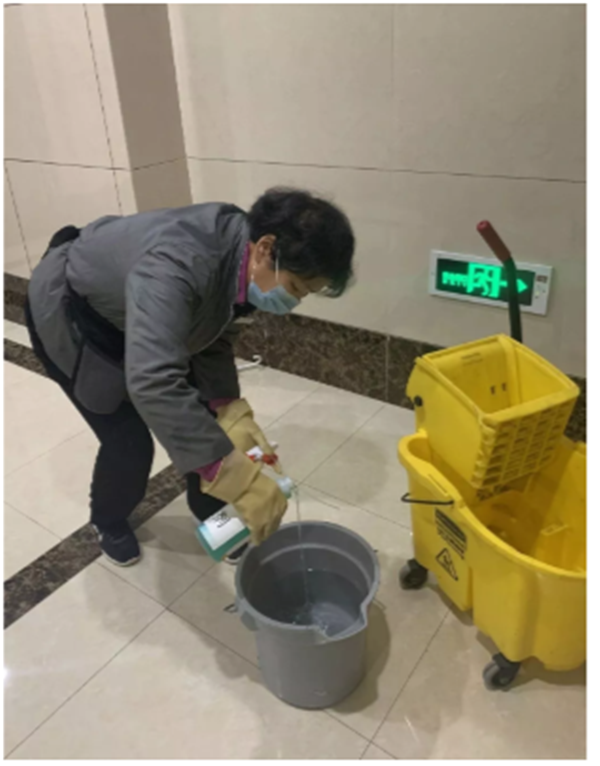 浙大一院之江院区项目部根据医院要求,做好物资、人员等各项应急准备。所有员工戴上口罩和手套,按院感要求做好标准化终末清洁消毒;对自助挂号机、门诊公区、走廊、自动扶梯等公共场所进行严格消毒,做好记录,确保执行到位。个人防护方面,加强对员工院感知识培训,不断普及正确的洗手方法,将现场教学和实践操作结合,将手卫生的重要性传递到位,确保员工学懂、弄通,落实。