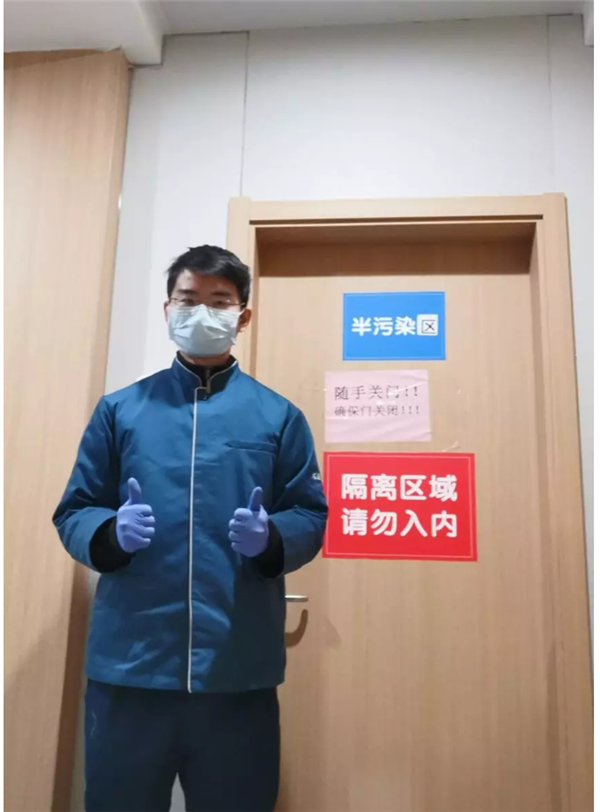 穿上防护服,他快速进入角色,与全体医护人员一起并肩作战。医院的工作强度极大,危险系数极高,他除了需要对新病房进行消毒、搬运医疗物资、准备医院各种生活用品之外,还要协助ICU护士、医生穿戴防护隔离服。同时,他还随时准备进入ICU协助医护人员抢救危重病人。