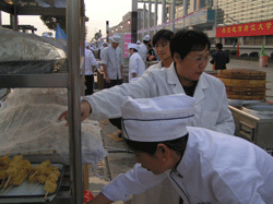 “你去美食节吃了吗?”这大概是上个星期最时髦的问候了。紫金港校区100多种风味小吃云集在此,确实使学生们大饱了眼福、口福,美食广场美味飘香,人头攒动,腾腾的热气把食堂人气搅得空前兴旺。1元钱一串的羊肉串、麻辣烫、红薯汤、蛋黄酥、玉米小排、早茶蛋糕、棉花糖……同学们嘴里嚼着手里拿着,眼睛还到处张望着,吃得不亦乐乎。美食展卖的师傅们也是边忙呼着边应付着,吆喝声一声更比一声高。虽已深秋凉意袭袭,但是美食现场却是热火朝天,无不吸引浙大的莘莘学子们。