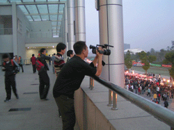 如此盛会,摄影爱好者自然不会错过“收藏”美景的机会。很多人带着大件小件的拍摄工具,专程来采风,他们忙碌的身影成了美食节上一道独特的风景。一名来自浙江工业大学摄影协会的女生单薄而敏捷的身影在人群中显得格外引人注目,只见她身背一个大挎包,脖子上挂一个长长的“对焦”照相机,手里还拿着一个小小的数码照相机,好一派大摄影家气派。她告诉记者,她已参加过好多次美食节,这次机会,当然也就不错过机会。