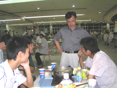 褚健在学生餐厅和正在就餐的大学生进行了亲切交谈,了解了同学们的学习和生活情况,并向同学们询问了对学校后勤服务工作的意见。当同学们回答对学校后勤服务工作十分满意时,褚健高兴地勉励同学们要珍惜光阴,合理安排好学习和生活,保持健康的身体和旺盛的学习精力,发奋学习,为将来走向社会打好基础,也为学校争光。