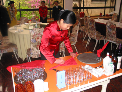 3月23日,作为此次培训活动的重头戏,接待中心在邵科馆举行了职工技能比赛。比赛项目包括烹饪技巧和餐桌服务,烹饪技巧从菜肴的色香味形等7个方面对餐厅厨师的操作进行了考核,餐桌服务从仪容仪表、餐桌摆台、酒水服务等15个方面对餐厅服务员的服务技能进行了实兵考核。来自邵科馆的13名厨师、服务员参加了此次的比赛。