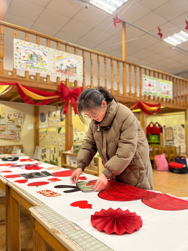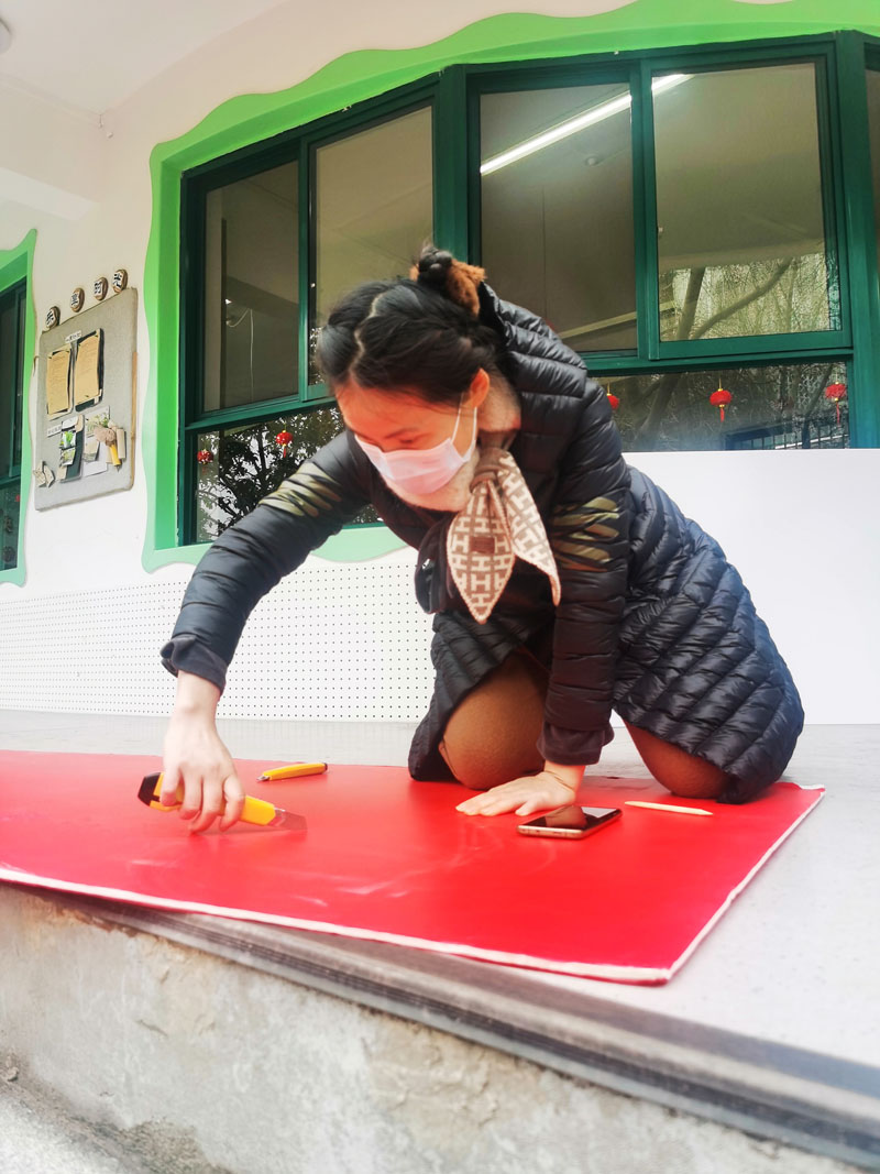 为了让孩子们的“开学第一日”充满惊喜与仪式感,班级老师们早已开始精心创设美丽温馨的环境。写福字、扎气球、铺红毯、搭展板,大家纷纷亮出拿手好活,“新气象”逐渐在园内呈现出来。