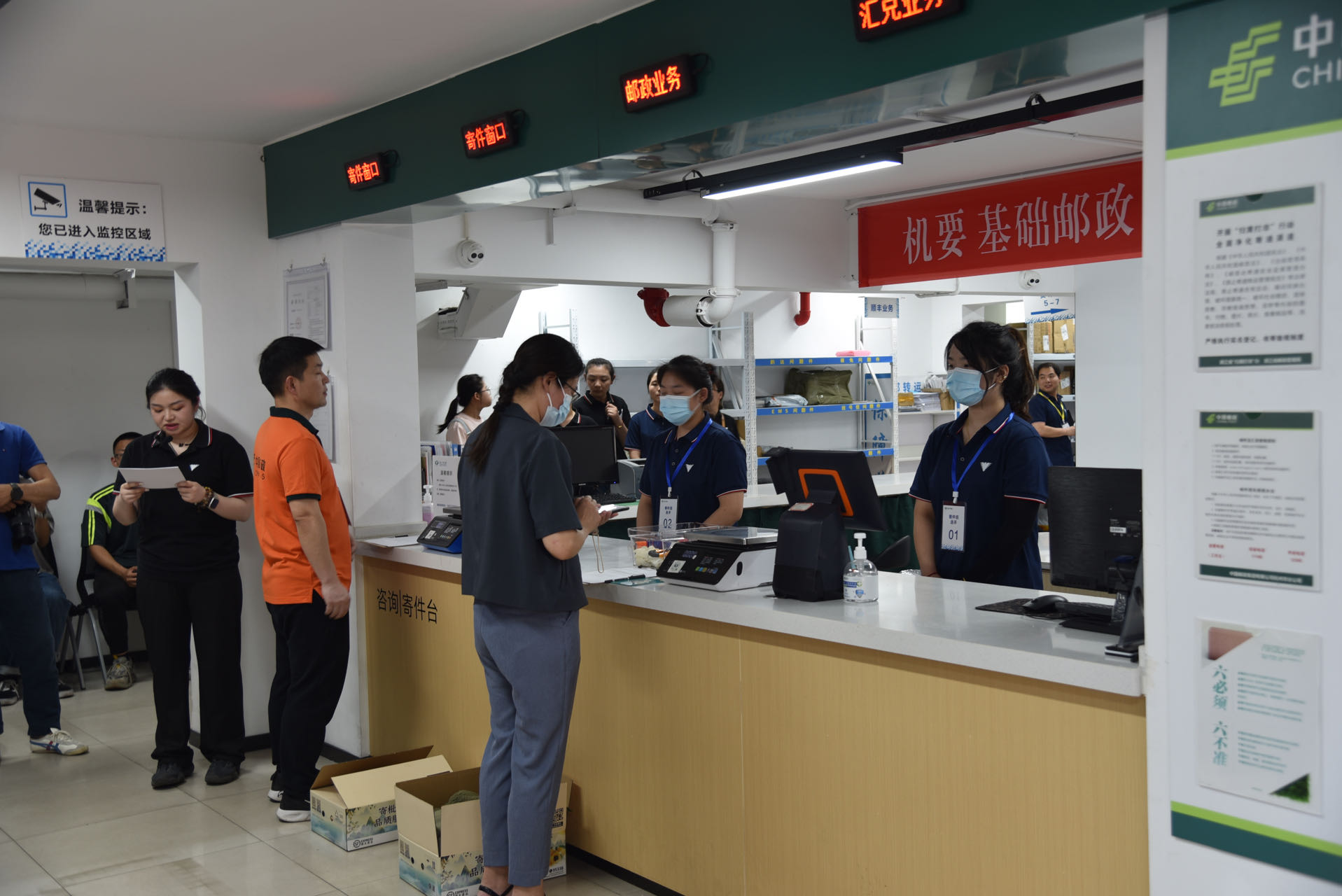 此次技能比武通过选拔,邮递中心各校区分别派出代表参加决赛,围绕收寄件、基础邮政、机要收寄、快递上架等四个项目开展比武活动。寄件组要求选手在多物品收寄过程中严格落实快递寄递快件收寄规范、禁限寄物品识别、快件包装技术、快件称重计费电子下单相关技能活动;基础邮递组围绕挂信与挂刷贴签、函件称重、资费等内容;机要收寄组考察机要件的收寄规范;上架组则从快递上架速度、准确率以及能否挑选出实验试剂类、生鲜件、错误件等方面考察了参赛选手的专业水平。