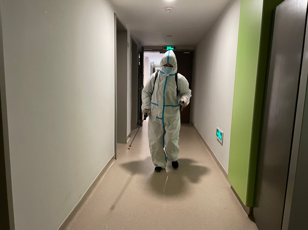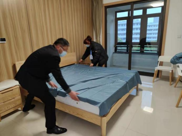 与此同时,项目部还承担起医院300间临时休息客房的保洁工作,垃圾收集、医废处理、环境消杀、物资准备一项不落。这项工作每天早上10点前必须完成,确保凌晨2点出去采样核酸的医生,早上9点回来后能尽快入住。