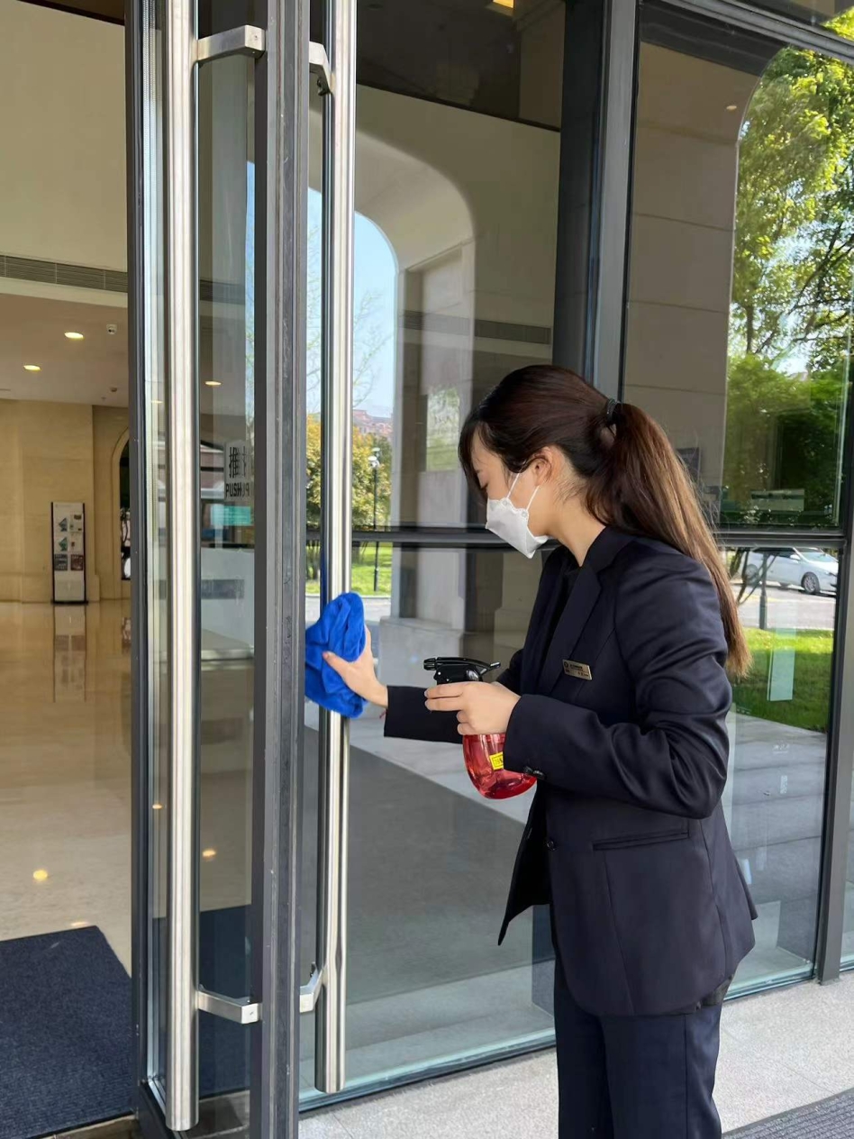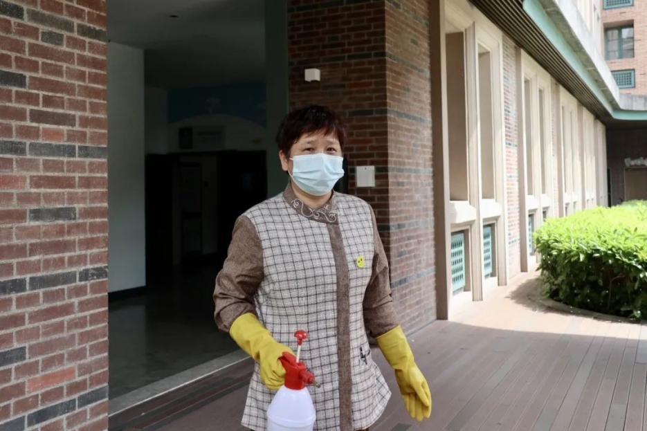 一份坚守,是全体员工的互帮互助。疫情期间,消杀工作不能马虎,而骤减的员工数量给环境部消杀工作带来巨大考验。封校期间,只有10名保洁员,需要完成隔离区每日三次的重点消杀和其他区域的每日两次消杀工作,日均3万步的工作常态也难抵压力的巨大。此时,在校的管家、会务、工程、绿化,凡是能工作的,大家都前来帮忙,经过培训后,迅速上岗,形成联防联动的“共同体”,用细致之心守护师生安全。