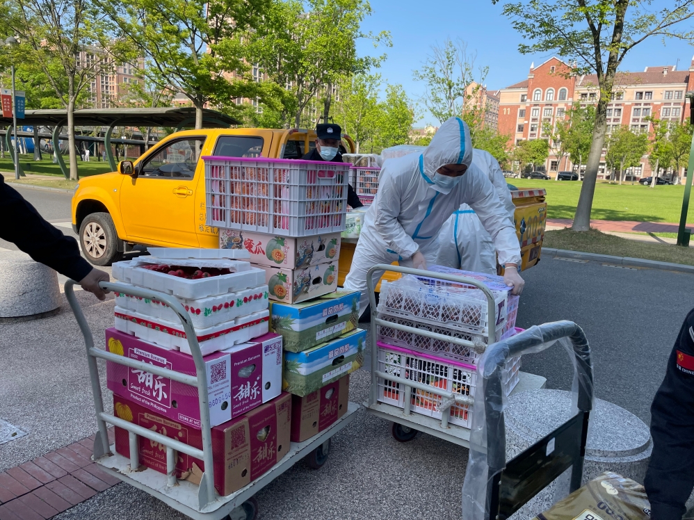 一份饭菜,最暖人间;人间烟火,最抚人心。封校期间保障师生生活物资供应、一日三餐正常饮食至关重要。项目部承担起物资运输重任,帮助食堂运送蔬菜、肉类;帮助校内超市运送水果、泡面、饮用水;帮助校外教师公寓订餐送餐……在封控的寂静里,他们热火朝天,顶着日月星辰,奔跑在校园的角角落落,实在太累了,就在堆满物资的仓库里、过道上、操场边稍稍躺一下,生怕闭上眼睛就睡熟过去,错过了搬运的任务,耽误了整体进程。他们是逆行的“货拉拉”,团结一心为抗疫工作“输血助力”!