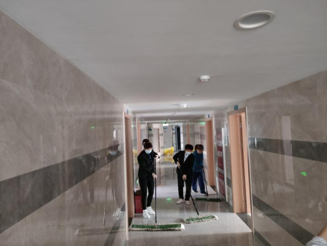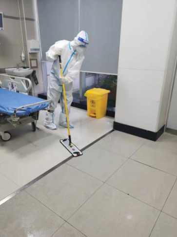同时,项目部深入疫区,向方舱医院以及医院新开感染科病区和负压病房紧急增派6名保洁员,开展感染病区的病房保洁工作,还承担起特殊感染救护车的消杀任务。项目部新入职的副经理陈立到岗不到2个月,就一个人承担起24小时连轴转的负压车消毒任务。