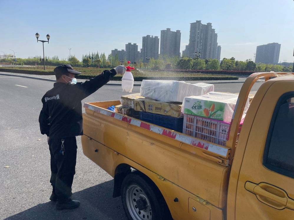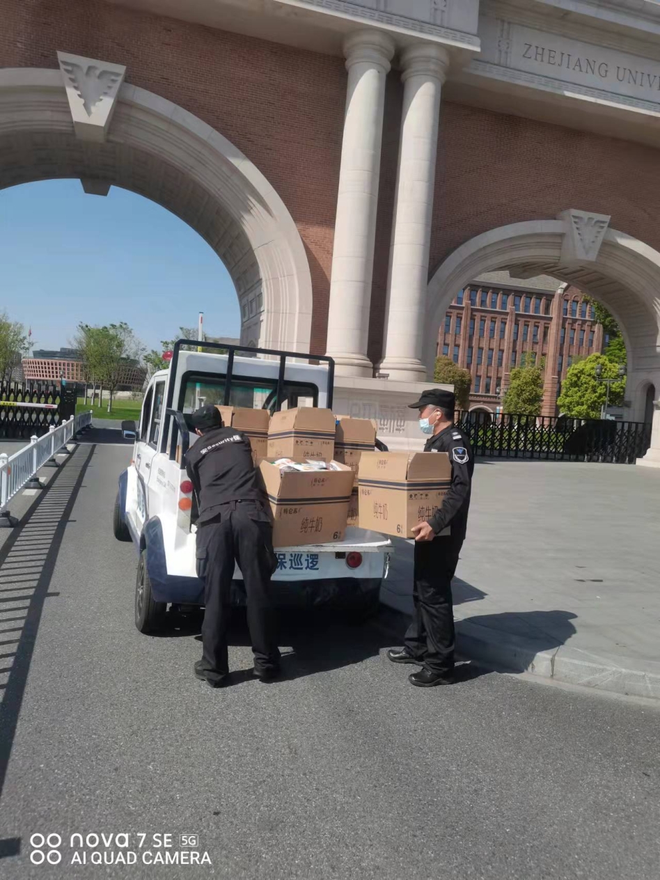 一声留步,是双向理解与尊重;“不近人情”,是守护校园安全与秩序。封校伊始,门岗安保作为校内管控的第一道防疫线,需要细细询问进入校门的师生,有些师生起初不是很理解,甚至觉得安保们有些不近人情。但正是这样一支“不近人情”的安保队伍,在校区完全封闭、社会车辆不能进入的情况下,承担起所有进校物资的消杀和搬运工作。起早贪黑,一遍遍无死角地消杀、一次次上下楼搬运,黑色的保安服被汗水浸透又风干,风干又湿透,背后的衣服变得白亮白亮的,这份实实在在的服务、身体力行的守护也让师生理解、尊重和感动。