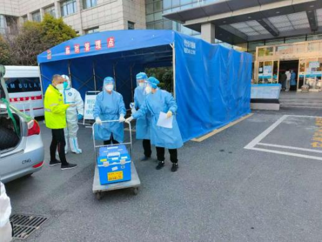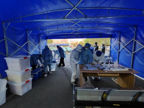 4月3日,收到海宁四街道全员核酸采样检测的通知后,项目部立即组织全体管理人员至临时管控区标本接收点进行标本登记、接收、转运工作,截至晚上10点,共计接收核酸标本299箱,标本101袋。此外,项目部每日转运新冠疑似垃圾共有200余箱。
