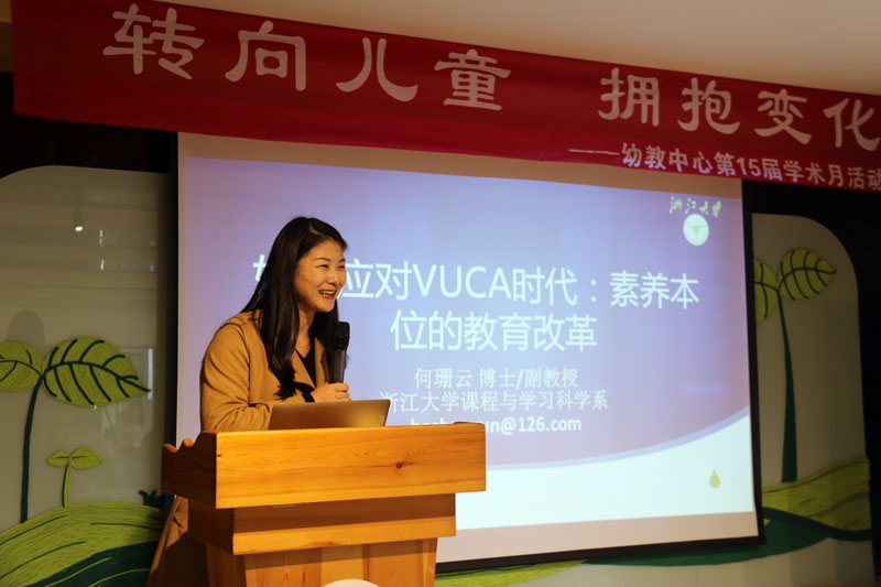 为更好地适应不断发展的学前教育需求,11月16日下午,幼教中心邀请了浙江大学教育学院何珊云副教授作题为“VUCA时代中素养本位的教育改革”的报告,介绍在变幻、莫测、复杂、模糊的时代中如何进行科学的教育改革以应对学习危机。报告会由幼教中心主任周熔主持,幼教中心班子成员、全体管理干部以及各分园年级组长、教研组长共六十人参加。