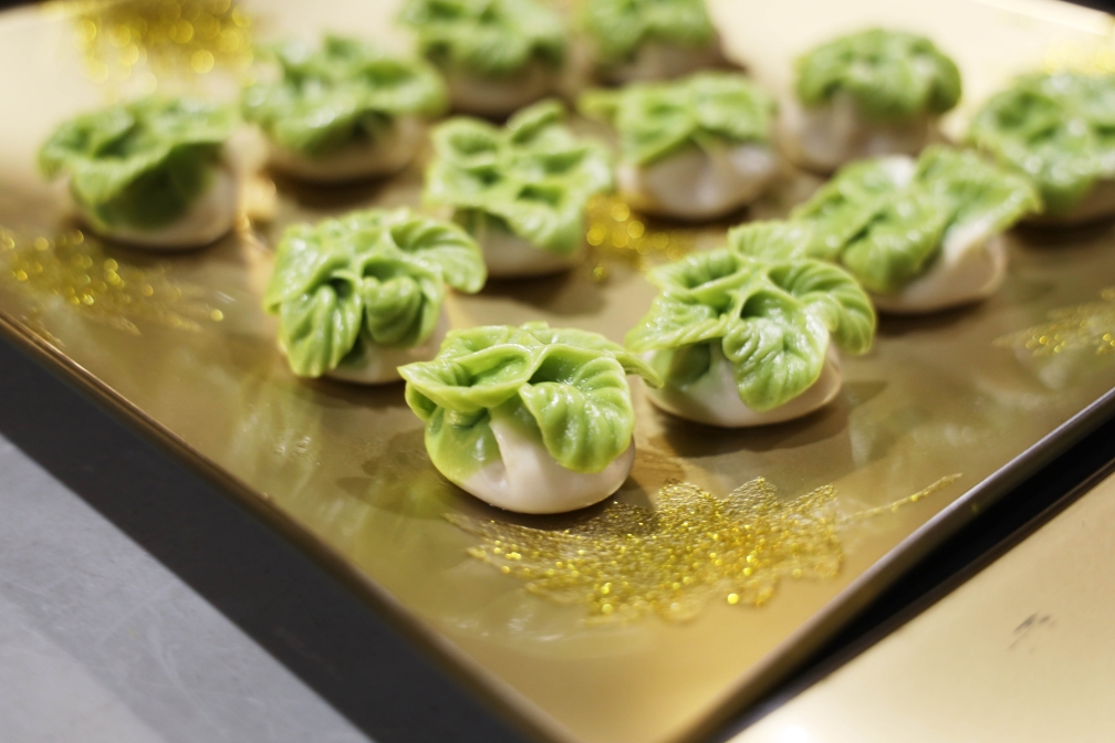 食堂的厨师先给大家示范了翡翠白玉饺子,翠绿、雪白的面团在大厨指尖变得灵动起来,三两下,一颗翠绿的白菜饺子跃然指尖。在厨师的指导下,老师们也展开了翡翠白玉饺子的制作,擀皮、调馅、包成白菜的形状,看似简单的步骤,也难倒了不少人,老师们相互之间讨教学习、分享经验,自己手中的饺子也渐渐有了白菜的形状。制作完饺子,厨师又教大家制作了名为“百花齐放”的烧麦,学得一门手艺,大家都雀跃了起来,期待过年也能为家人们奉上年宴菜肴。