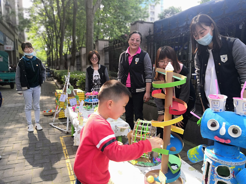 活动现场吸引了不少社区居民与孩子们,党团员老师向大家介绍了地球日漫画作品背后的故事与涵义,孩子们则对自制的教玩具十分感兴趣。家长感叹道:“原来用废弃材料做的玩具这么有意思,好玩又环保”,纷纷为西溪分园老师和孩子们的奇思妙想点赞。此外,党团员教师还通过“环保小精灵”与孩子一起互动,通过讲故事、念儿歌的形式,宣传绿色环保理念。