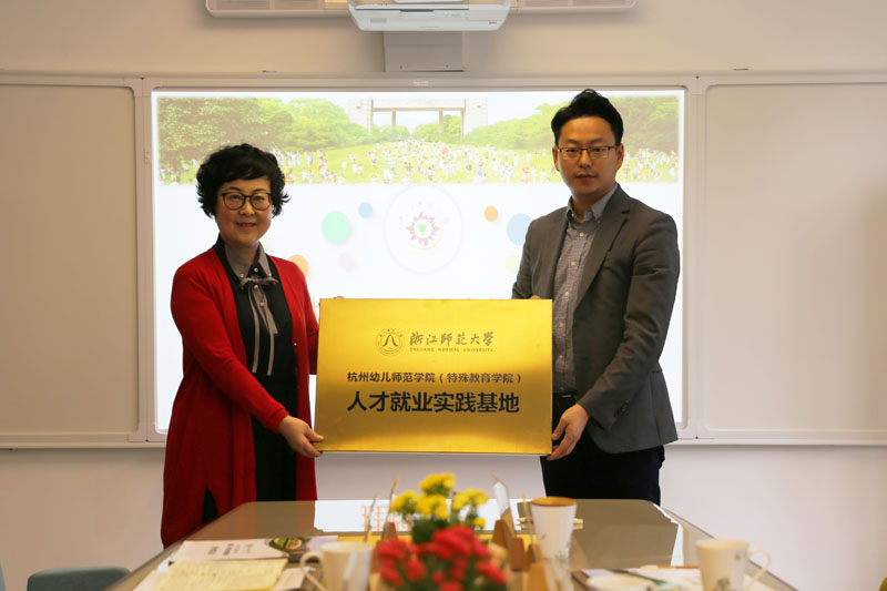 仪式上,双方代表签订了“共建人才就业实践基地合作备忘录”,浙师大杭幼师学院党委副书记张峰为浙大幼儿园授牌并致辞。