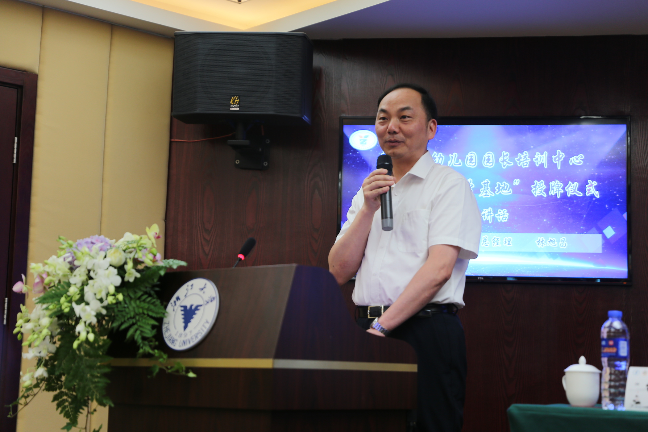 作为浙江大学附属幼儿园,依托高校、采取集团化办园模式的“浙大幼教”独具特色。浙江大学后勤集团总经理林旭昌首先介绍了浙大后勤的组织架构与工作内容,其中“浙大幼教”作为集团“金名片”,一直秉承“保障学校、服务社会”的宗旨为全校教职工子女提供高质量的学前教育服务,现被授予“学员实践教学基地”是一件喜事更是一件大事。林旭昌总经理希望“浙大幼教”珍惜这份荣誉,借助大平台与全国优秀幼教同仁们进行深度合作,开展实质性互动研修,并诚挚邀请在场嘉宾走进浙江大学幼儿园进行指导引领,携手共建新时代的美好教育。
