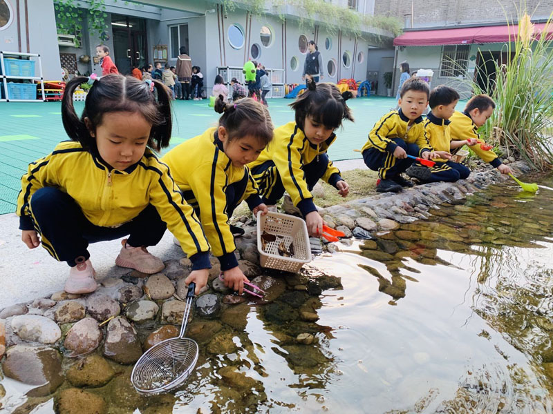 本次拍摄内容源于户外自然环境——“生态游乐场”的打造。随着季节交替,老师们细致捕捉到孩子们在与新环境互动中对小溪中的落叶产生了浓厚兴趣,于是带着孩子们与落叶生成了一系列探究活动,用各种方式在小溪打捞落叶并为落叶寻找新家。在将落叶送到大树下或送到落叶袋等活动中,孩子们了解了“落叶腐烂发酵能变成肥料”这一自然循环的环保理念。幼儿园负责人接受了专题采访,并对园区的“亲自然”课程及户外“生态游乐场”做了简要介绍。