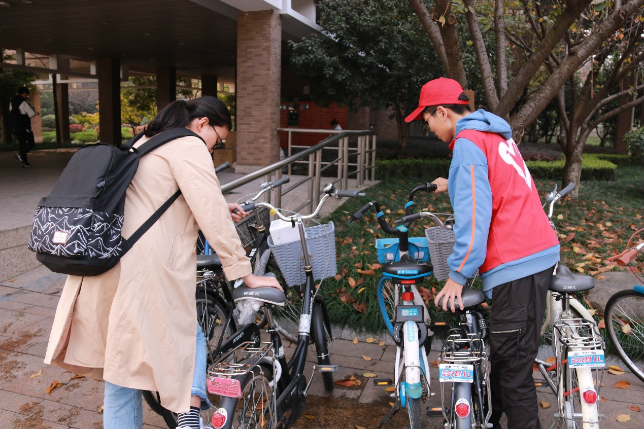 早上8:00、中午1:15、傍晚6:30,是紫金港校区西区教学楼人流量最大、车辆来往最密集的时刻。踩着点上课的学生们骑着各式的自行车、小电瓶,和着秋日的暖阳,迎着微黄的银杏树,匆匆奔向朱红色的西区教学楼。这也是物业保安们最繁忙的时刻之一:入口指引,车辆停放,提醒学生锁车……高峰期时,求是物业常常还需要抽调其他部门人员,保障交通正常运行。