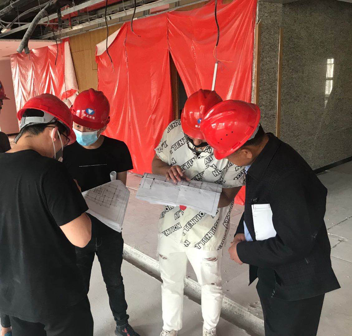 期间,由于施工区域面广、施工人员种类多、设计临时调整多、工期紧等情况给施工进度带来了困难。但项目部迎难而上,充分发掘资源,采取分层施工,白天加人、晚上加班等形式,在确保各班组人员各工种配备齐全的情况下,有序开展工作,保质保量地完成了工程施工,有效保障了甲方的进程要求。