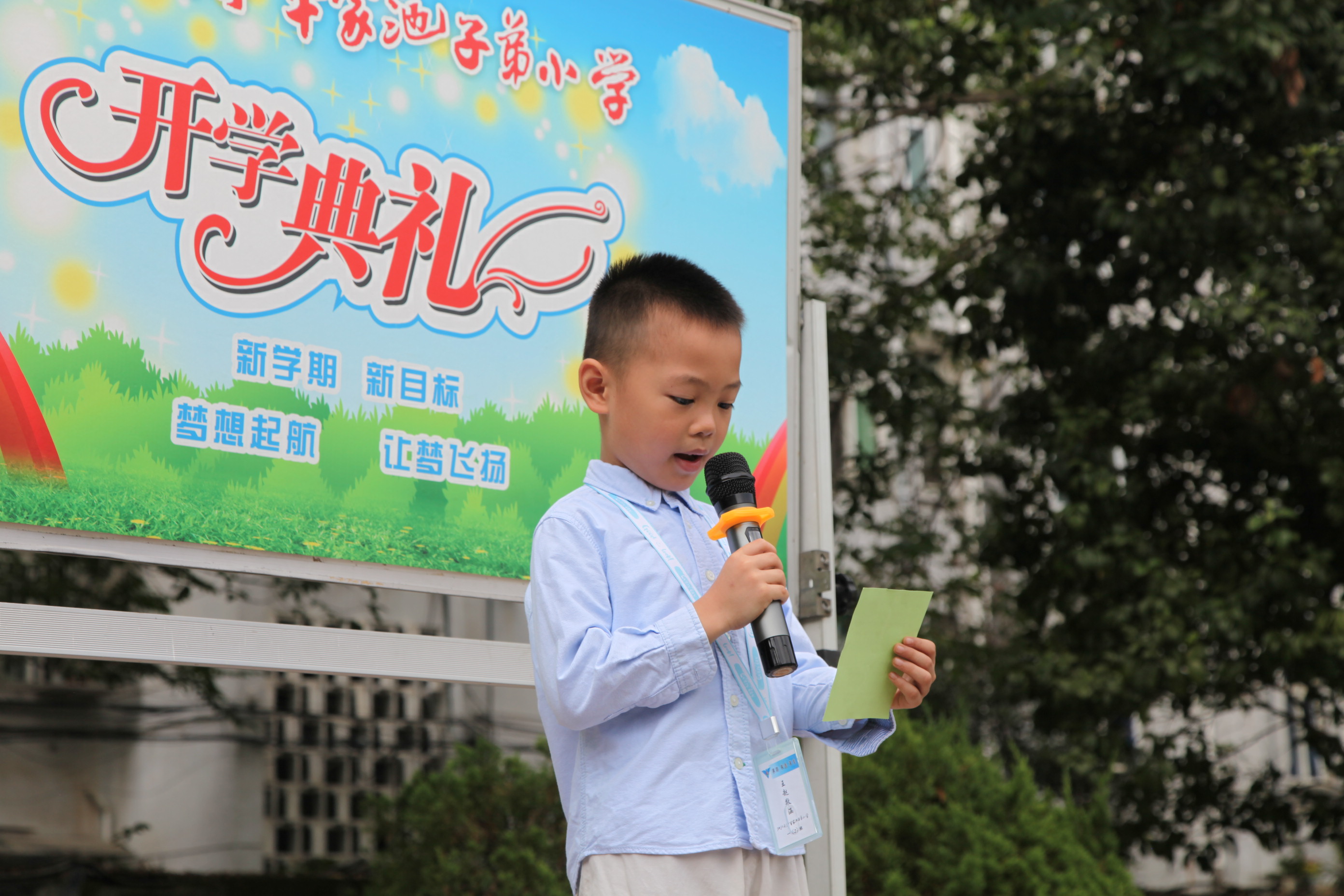 随后,一年级新生代表潘朵拉同学和王赵敬涵同学也表达了迎接新学期的决心。他们郑重承诺将严格自律,规范言行,用最大的热情和努力迎接新学期、新生活。在学习中带上理想和目标,自信和坚强,在生活中有定力、重素质,把自己培养成全面发展的小学生,以此回报学校和老师们的精心培育。