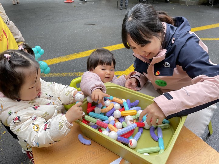 实验园党支部联合园工人先锋号、青年团员创新推出“Happy咿呀园”社区公益早教辐射活动,每周六邀请家庭走进园区参加互动坊游戏体验活动,让家长和孩子以直接感知、亲身体验的方式了解园所的教育理念及教育环境,普及婴幼儿抚养和家庭教育的科学知识,为有需求的家庭提供有力支持。