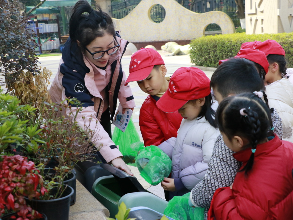 华家池分园、大华分园的党团员教师也带领着孩子们走出幼儿园、走进社区,将自制环保袋、垃圾分类宣传册递给身边人。他们穿梭在社区中,捡拾垃圾并分类收集,只为让社区变得更加整洁有序。