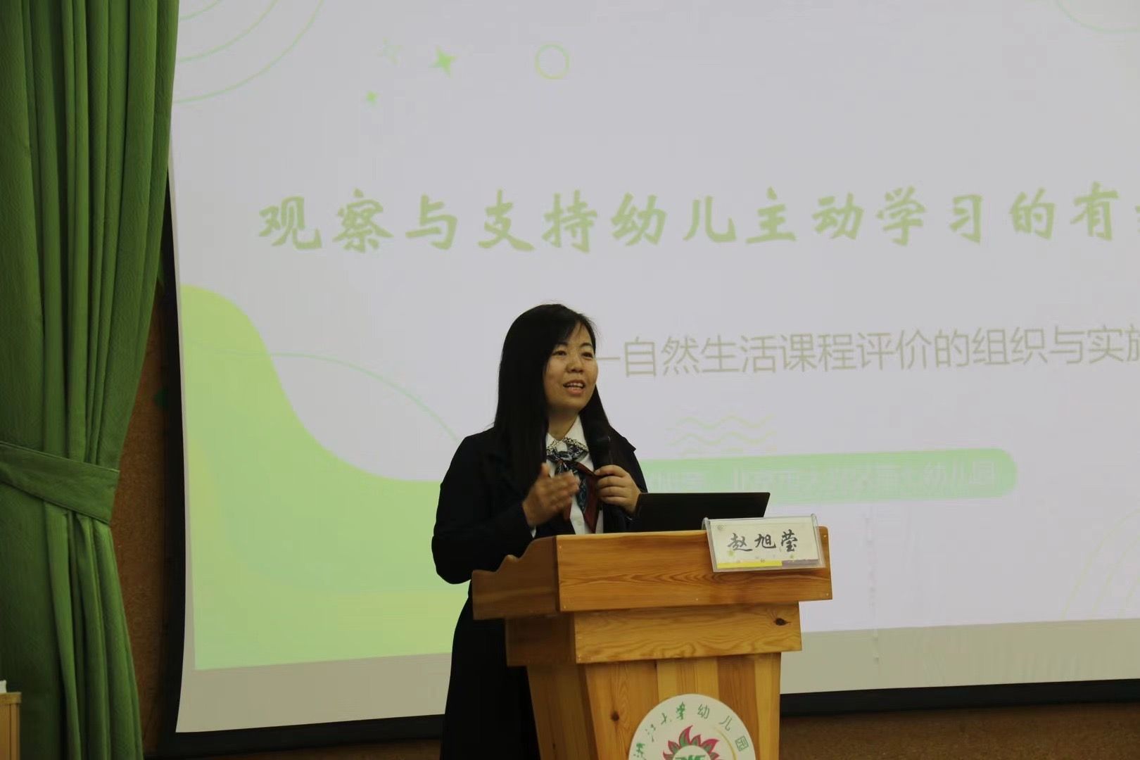 北京市特级教师、大兴区第七幼儿园园长赵旭莹带来《观察与支持幼儿主动学习的有效策略——自然生活课程的评价体系构建》的报告,她提出科学观察、精准施策、有效评价的有机融合对推动课程发展的重要性,也强调了科学观察要立足儿童视角,精准施策才能支持主动学习。有效评价有助提升保教质量。