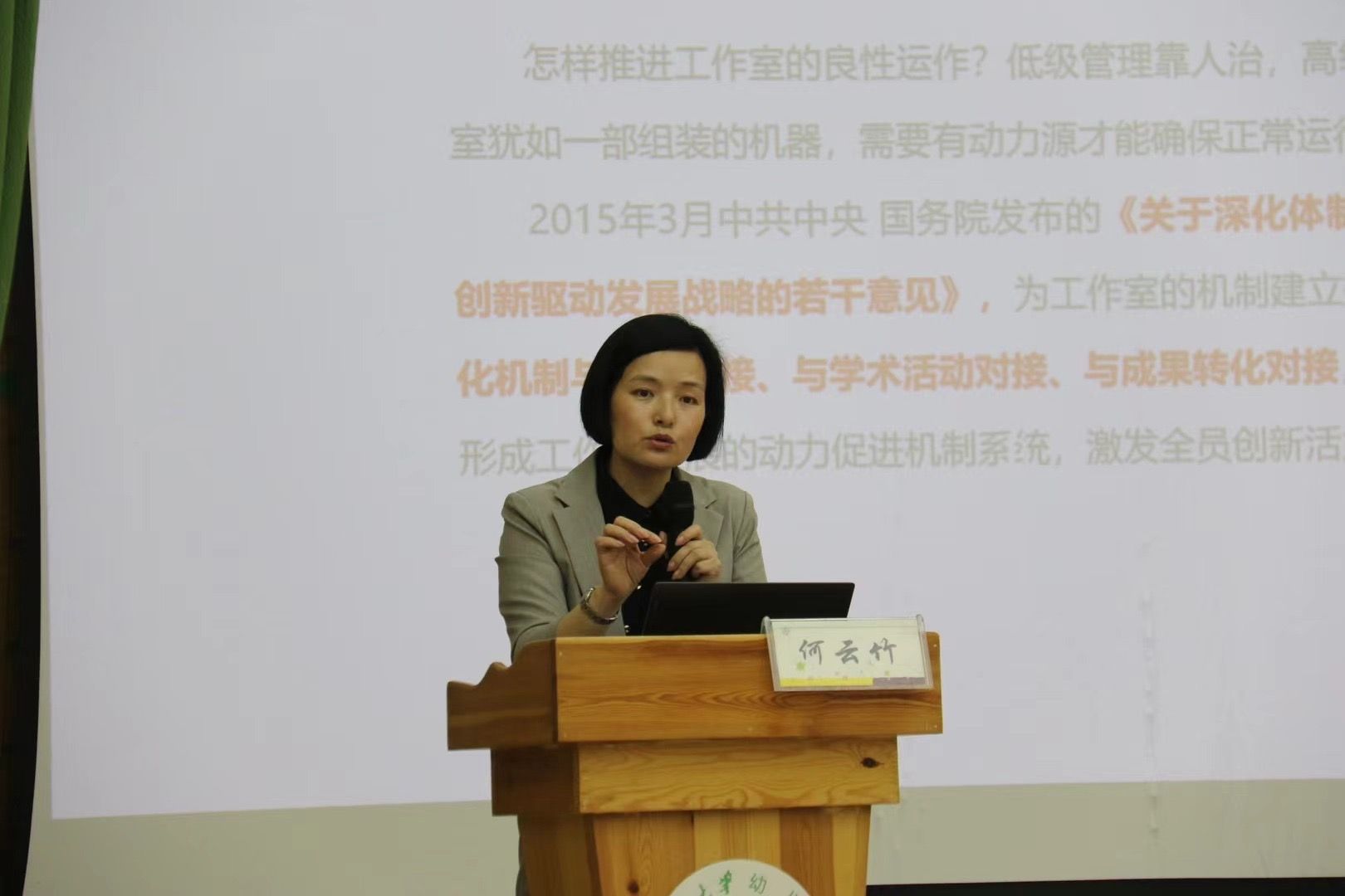 随后,活动进入专题微报告环节。四川省特级教师、绵阳市花园实验幼儿园园长何云竹分享了《名园长工作室建设的实践与思考》报告,她详细阐述了工作室的建设思路以及未来的发展规划,为在座的教育同仁提供了宝贵的经验。
