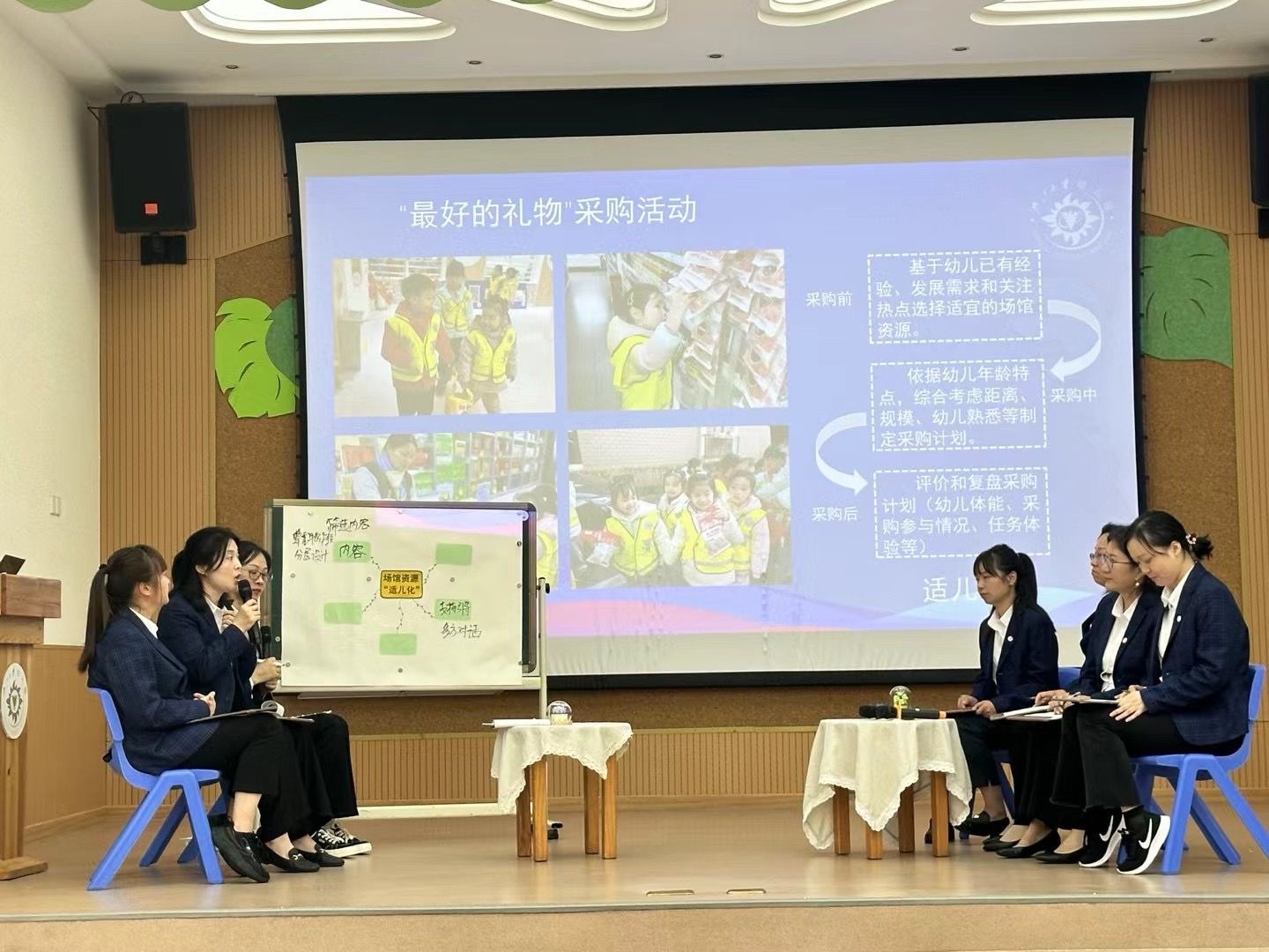 何晓勤名师工作室全体成员进行“U-C-K视野下场馆资源的适儿化”现场教研展示。在教研主持人幼教中心教科室助理龚靖靖的带领下,各分园通过分享场馆资源利用适儿化实施的教育案例,梳理了资源内容筛选、开展路径、课程评价等方面的适儿化做法,同时也通过交流和对话,更加明晰了场馆资源利用适儿化的开展方法。