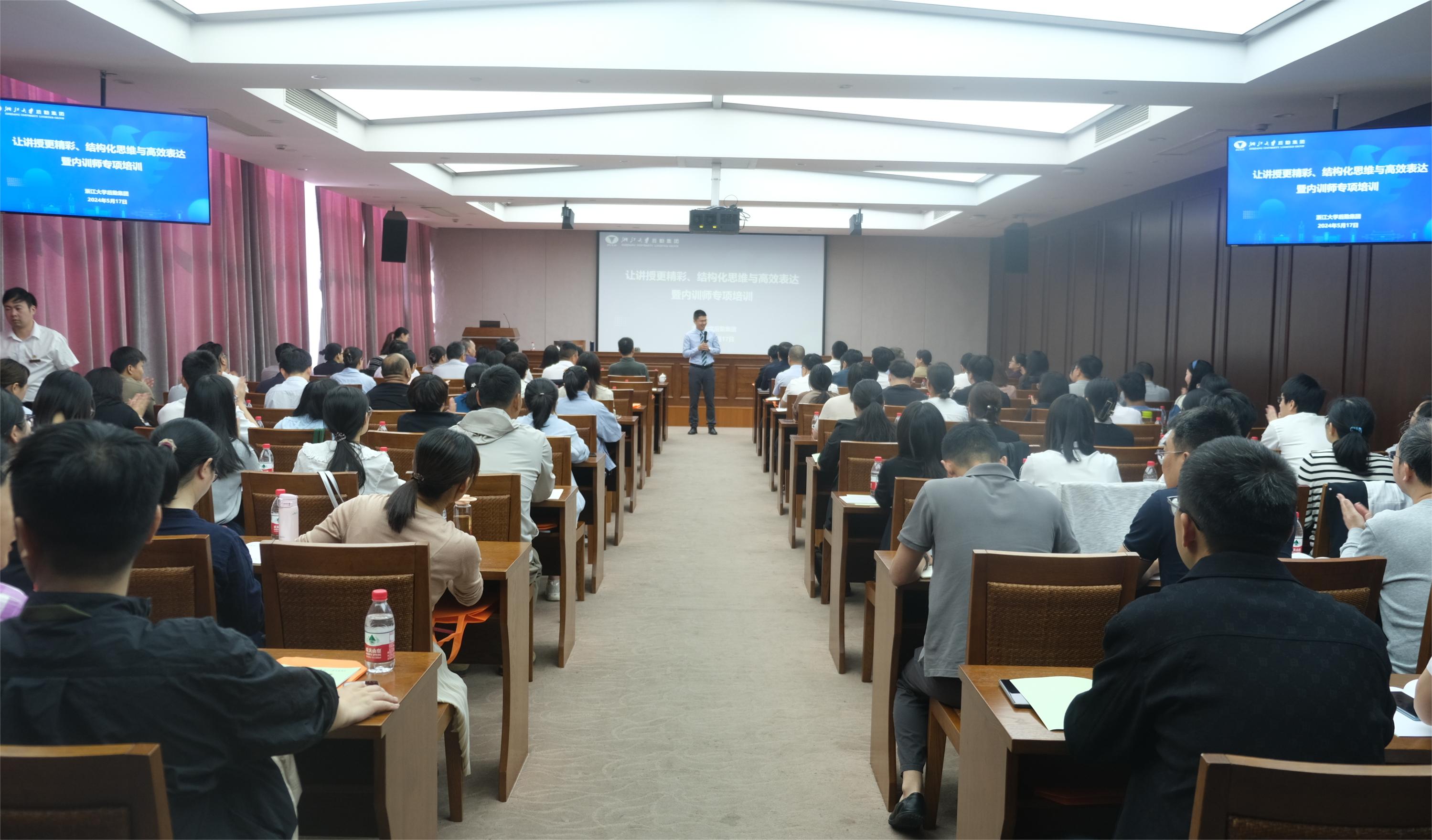 根据《后勤集团培训学院2024年培训计划》,为了进一步提升管理干部的综合性素质、内训师队伍的专业化能力、基层职工的职业化水平,5月17日,后勤集团“让讲授更精彩、结构化思维与高效表达”专项培训在玉泉校区图书馆二楼报告厅举行,2020年全国培联培训师推优大赛金牌导师余雄受邀做专题培训。后勤集团党委副书记、总经理吕斌出席会议。