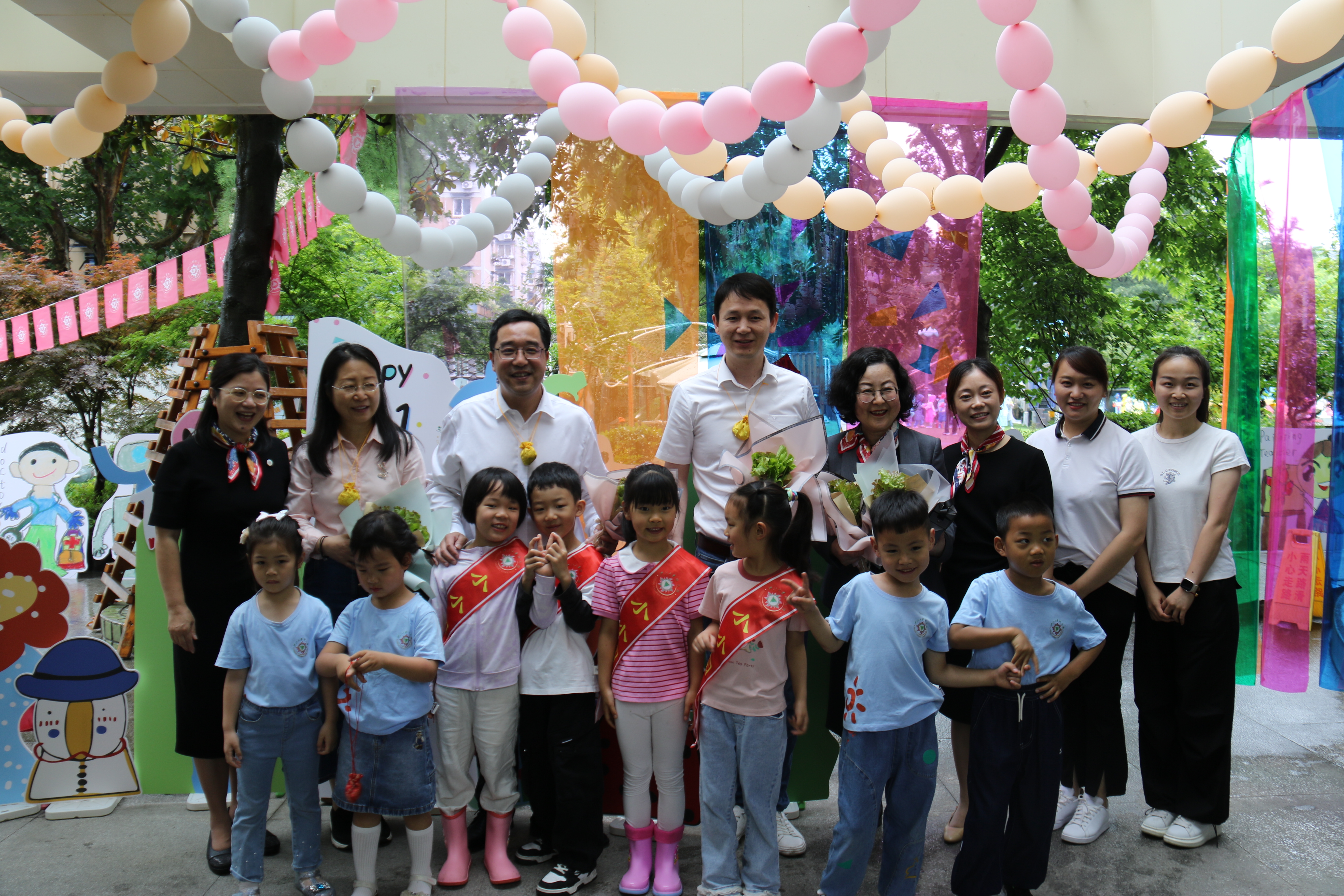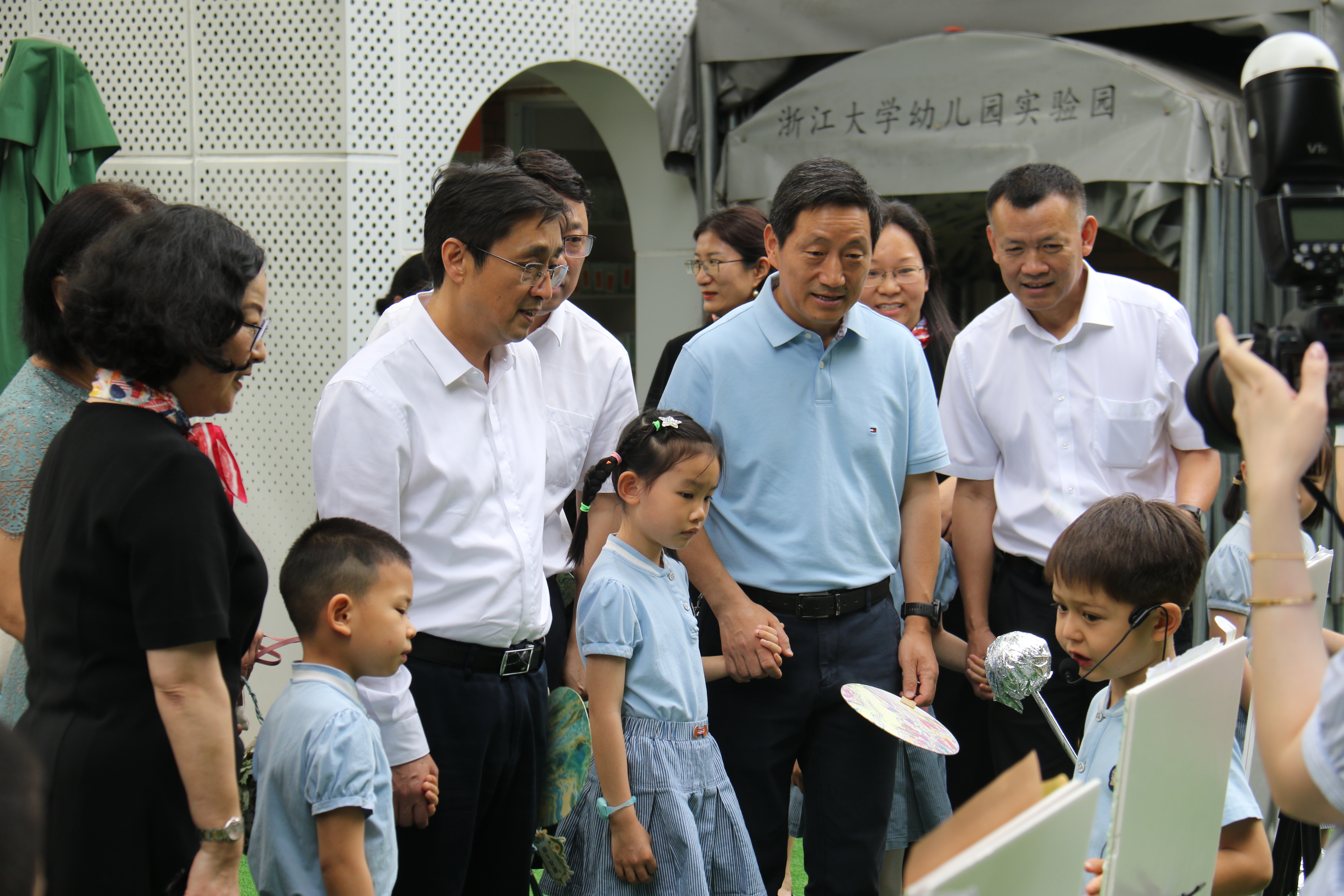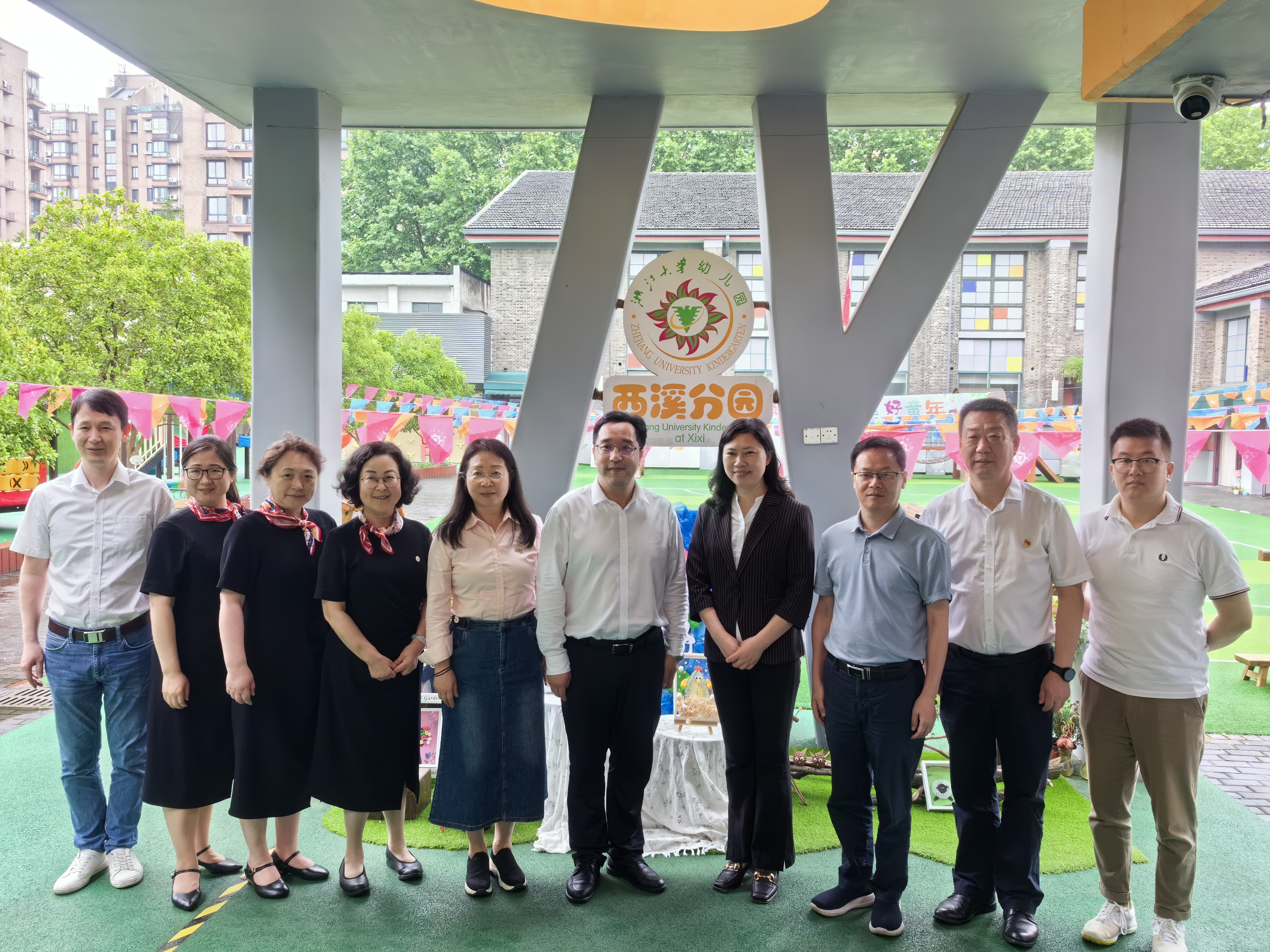 5月31日上午,后勤集团党委副书记、总经理吕斌,党委副书记、纪委书记刘辉文,总经办主任朱玥腾在中心主任周熔的陪同下,走访慰问了华家池分园、华家池子弟小学和西溪分园。华家池分园“戏水童年 潮玩不停歇”活动在孩子们的兴趣盎然中伴随着小雨欢乐地开展着,华家池子弟小学“红领巾 爱祖国”六一文艺汇演绽放着少年们的阳光,西溪分园中班组“诗词歌赋乐曲”表演展现了幼儿们的传承与追梦之旅。与此同时,浙大控股集团所属浙大规划院党委书记、董事长厉华笑,总经理张远景等一行也来到幼儿园亲切慰问,并向中心主任周熔了解了幼儿园发展现状。