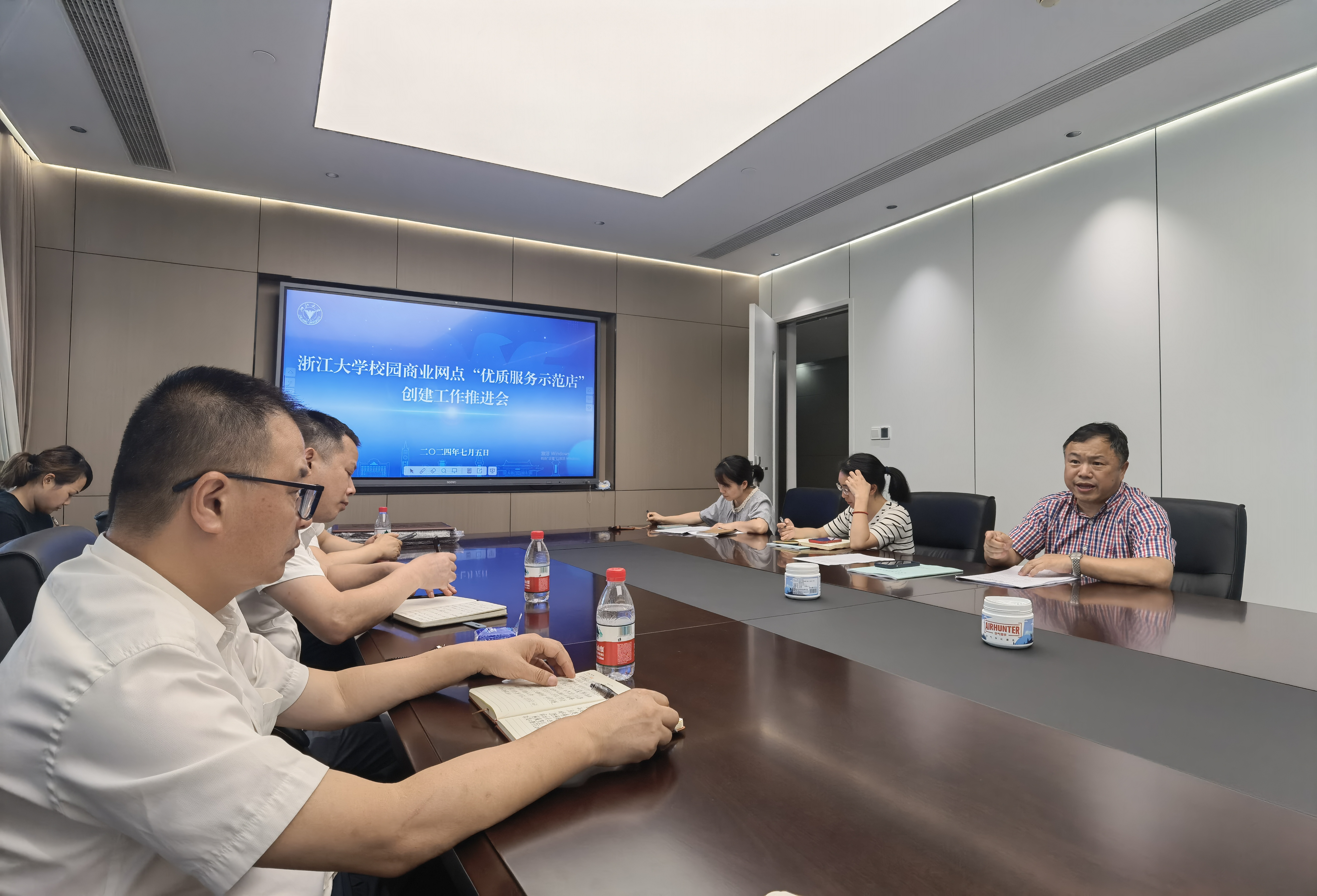 自2023年底学校启动“优质服务示范店”的创建工作以来,已有30多家校园商业网点响应参与,其中5家创建单位在经过6个多月的创建过程后,如期达到了评估标准,且顺利通过了多次检查和考核。姜群瑛强调,“优质服务示范店”的牌子来之不易,示范店更是肩负着重任和职责,需要在服务、管理、员工培训等方方面面起到示范作用,引领其他商业网点树立看齐意识,不断提升服务质量,满足师生对美好生活的向往。同时也提醒大家,“优质服务示范店”实行年度复核制,总量控制,动态管理,示范店需要不断保持并进步,既要高要求,也要守底线。最后,姜群瑛表示,推进会是一个新的起点,“优质服务示范店”创建需要持续推进,不断提高服务质量,以满足学校创建世界一流大学的总要求。