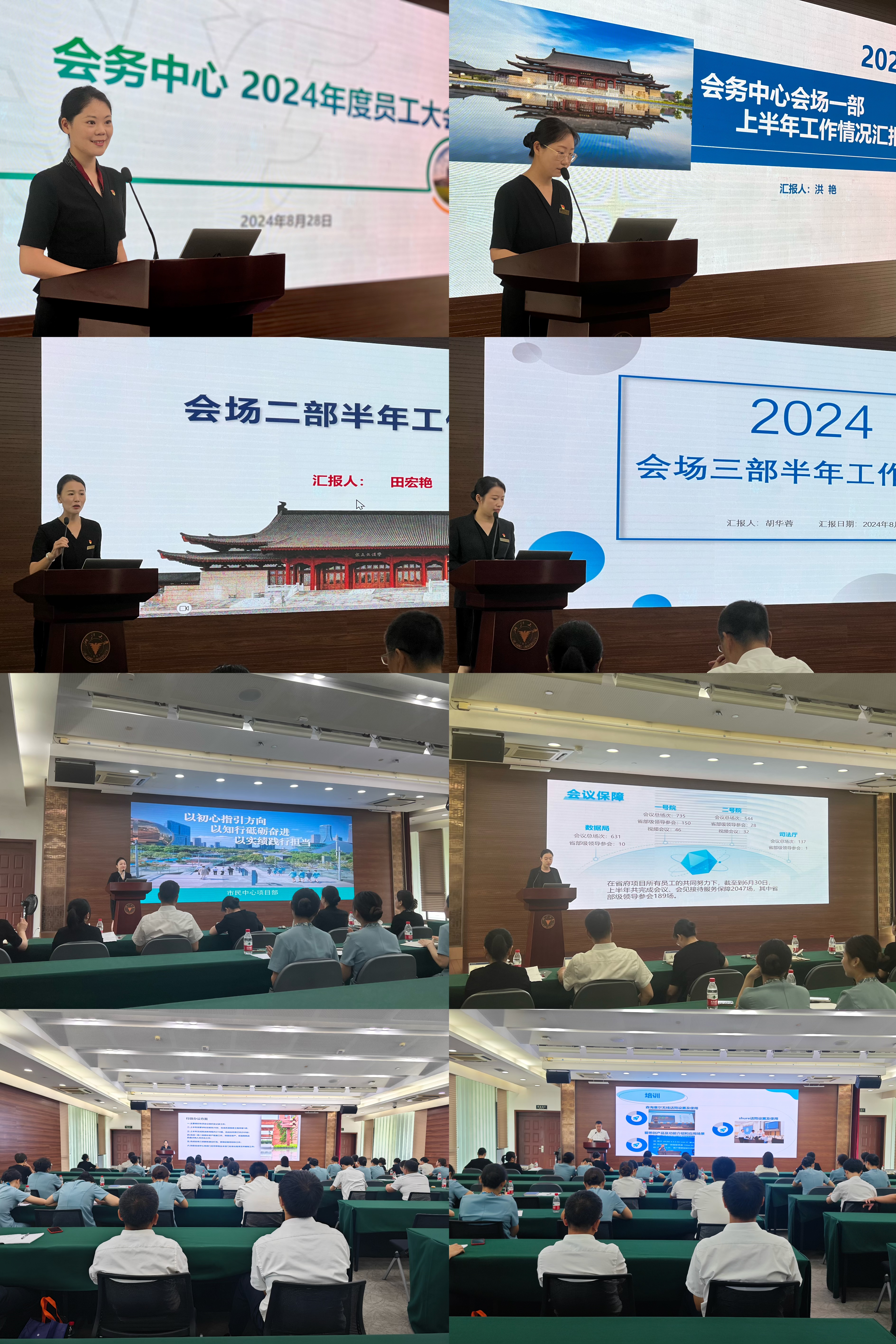 首先,会场一部、会场二部、会场三部、市民中心项目部、省府项目部、综合部、技术部等7个部门依次做上半年工作汇报。各部门负责人以数据说话,重点围绕工作实绩和亮点举措,认真梳理总结了上半年取得的成绩,并对管理服务过程中发现的短板及瓶颈问题进行了剖析,有针对性地提出了下一步工作思路,积极为部门和中心的发展出谋划策。