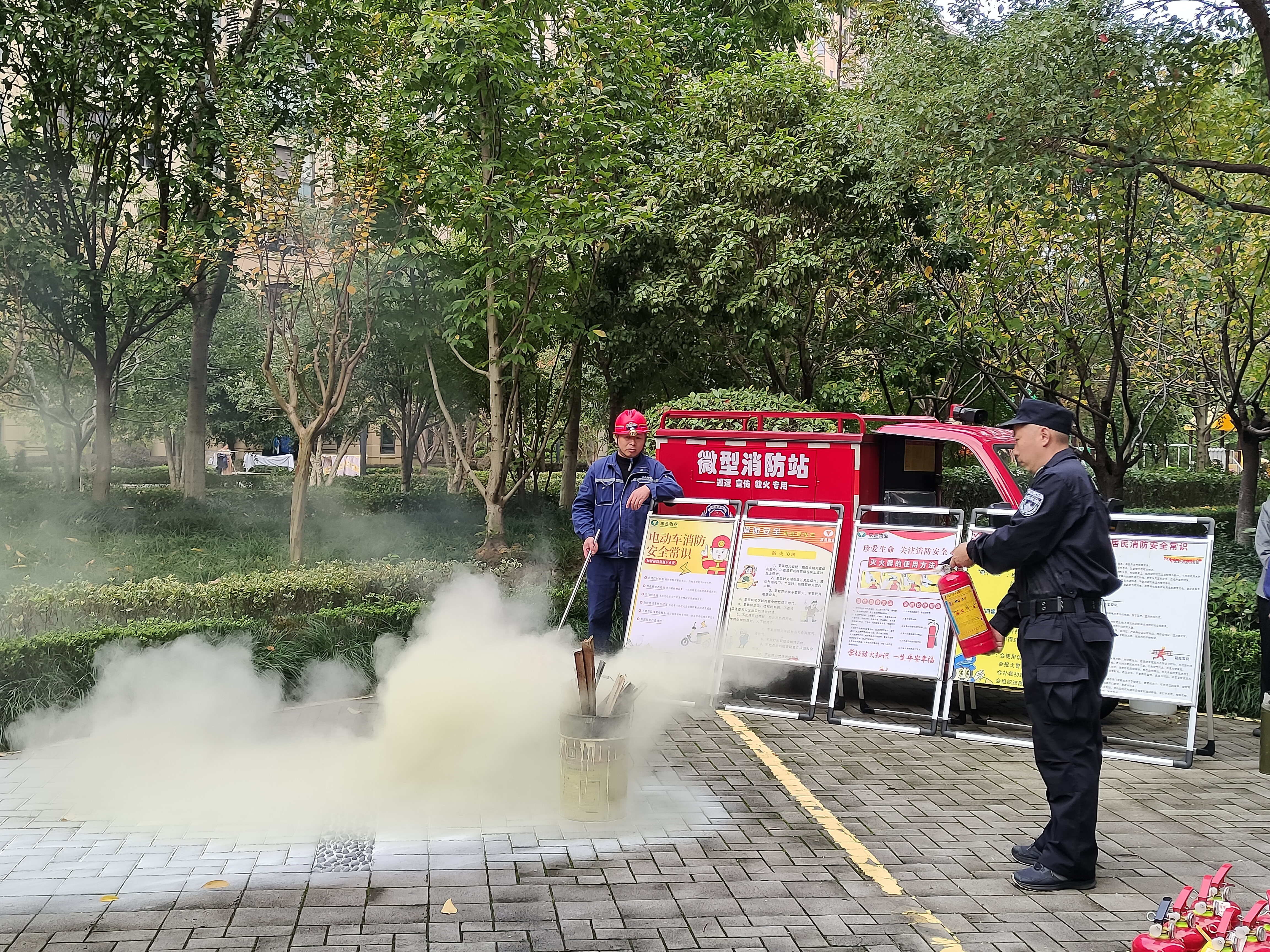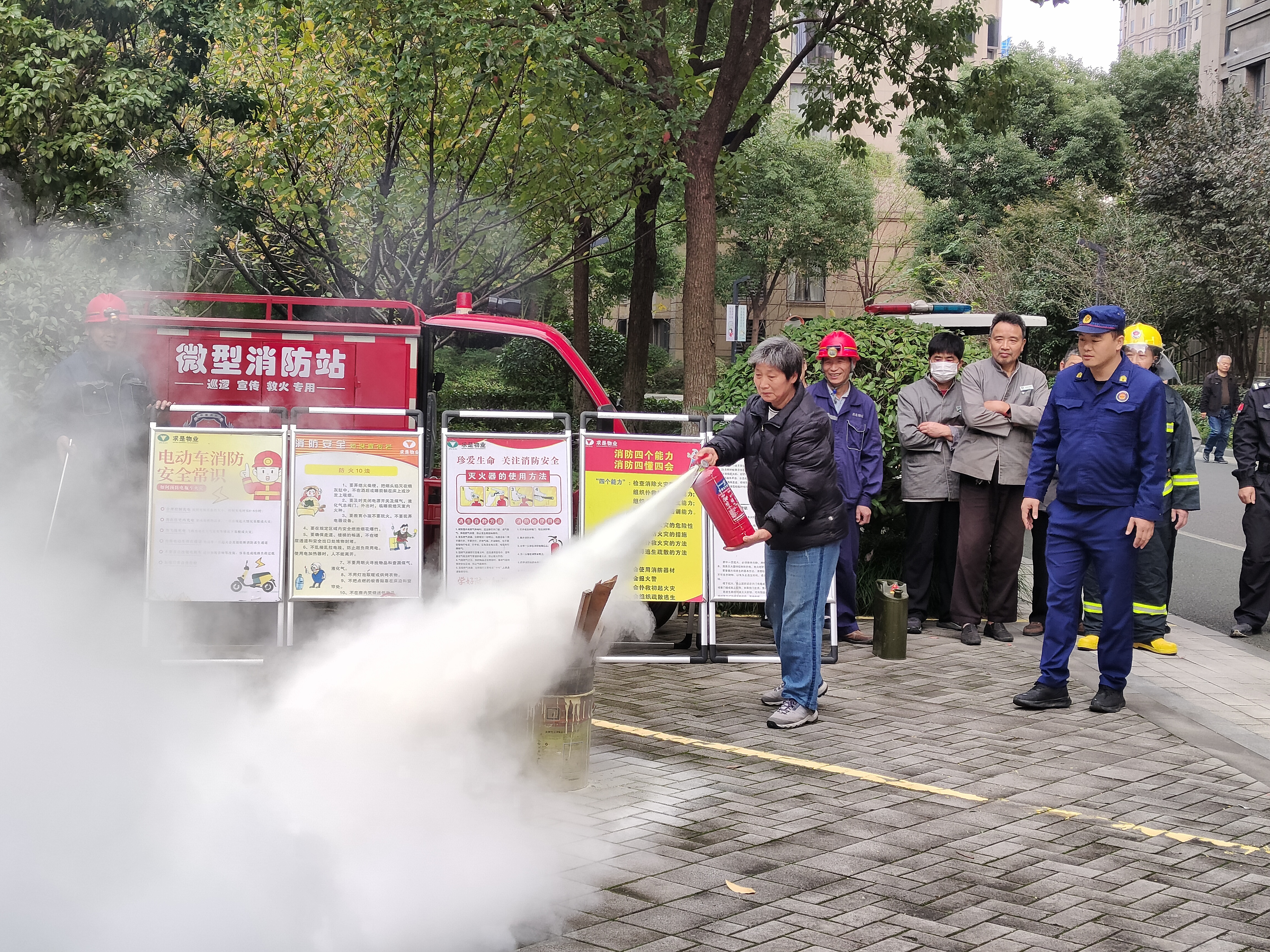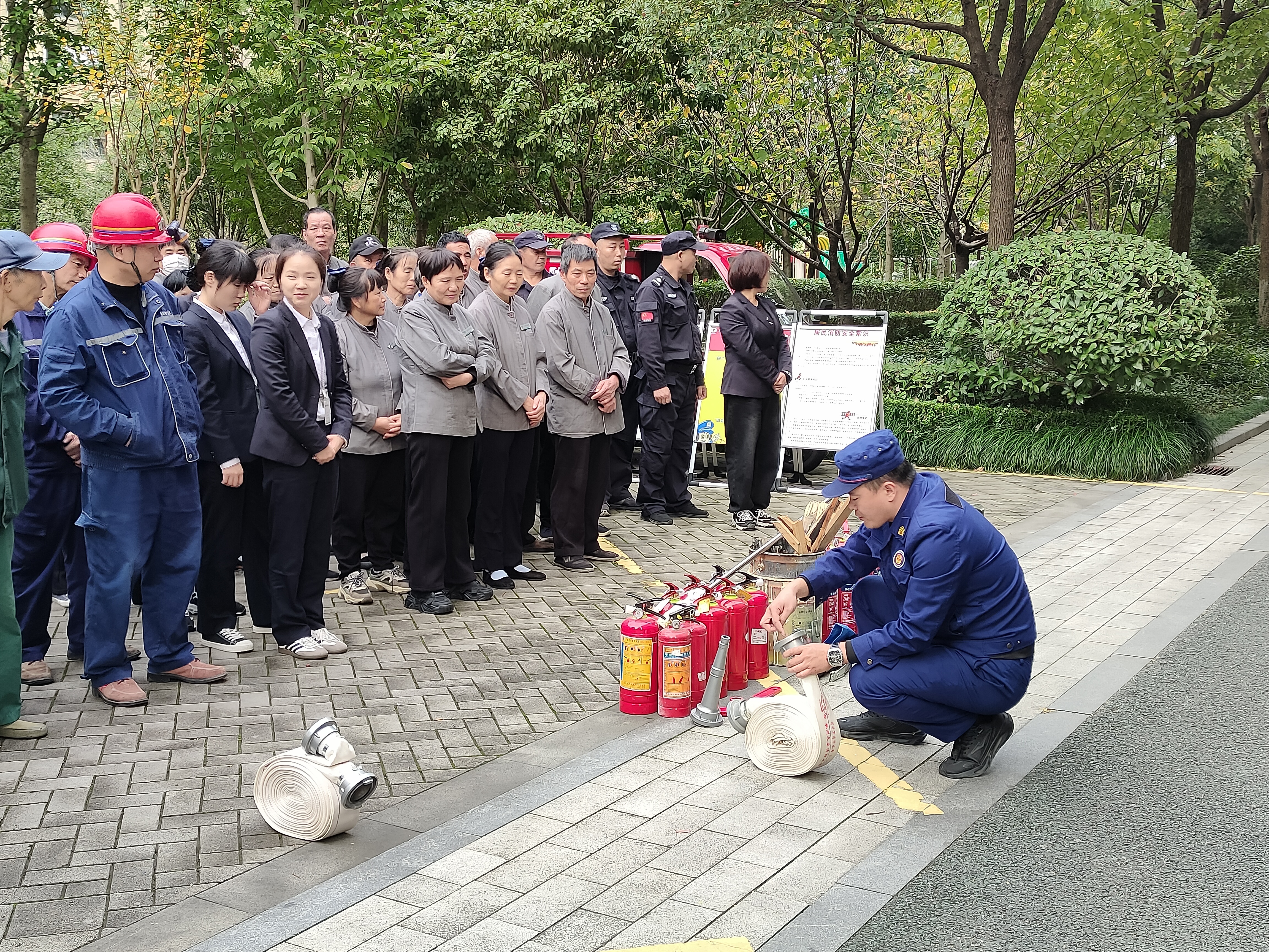 活动开展过程中,一些路过的业主也被吸引过来,驻足观看并学习消防安全知识。项目部工作人员热情邀请业主们参与操作体验。业主在体验后表示:“我学会了如何使用灭火器,非常实用,在关键时刻可以保障安全。”