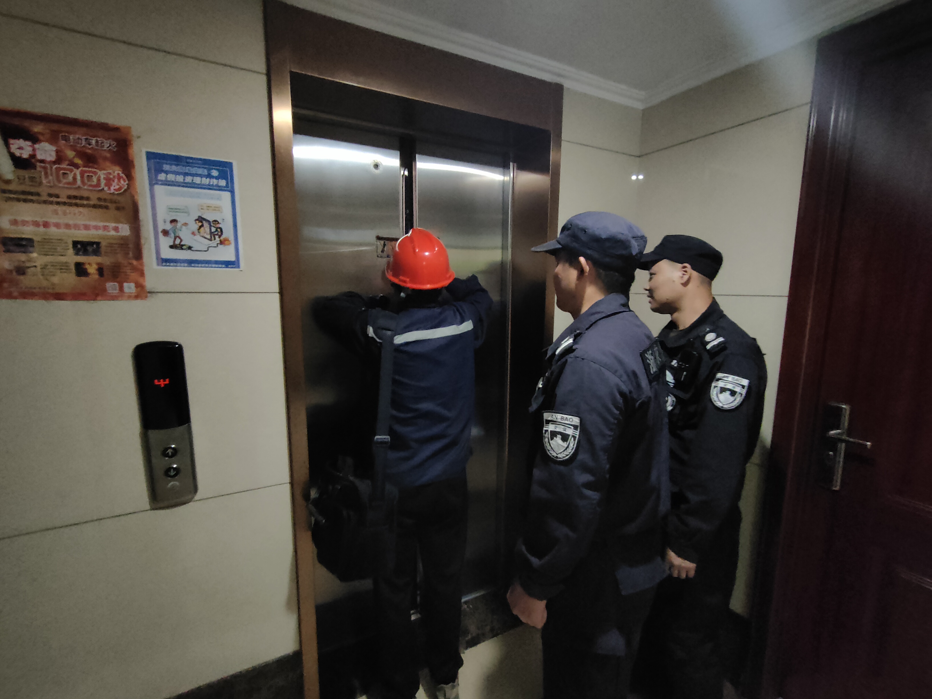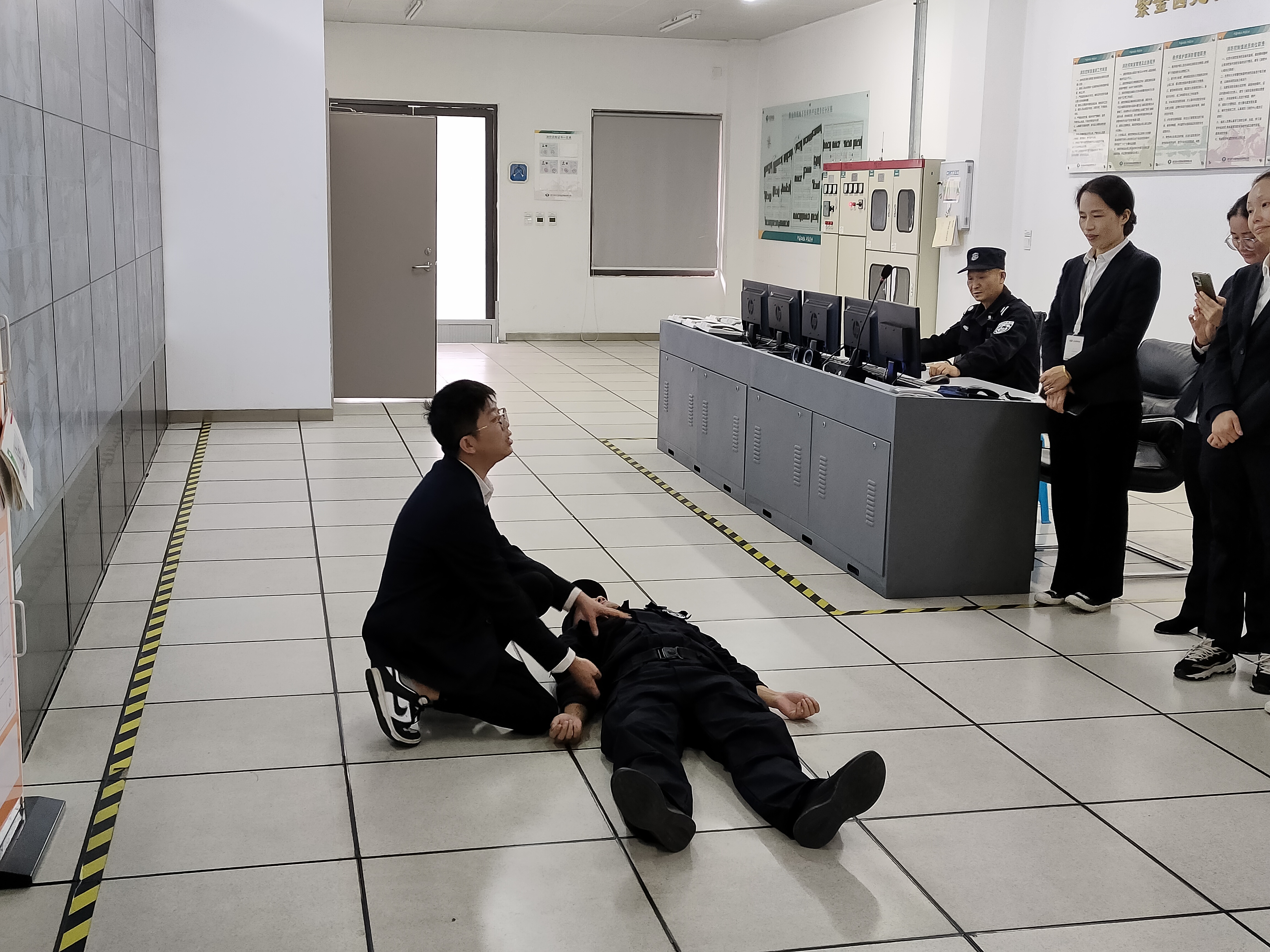 在场景模拟环节,大家依次进行了电梯故障解救、火灾紧急疏散、抬救伤员等演练。整个过程紧张有序,达到了预期效果。
