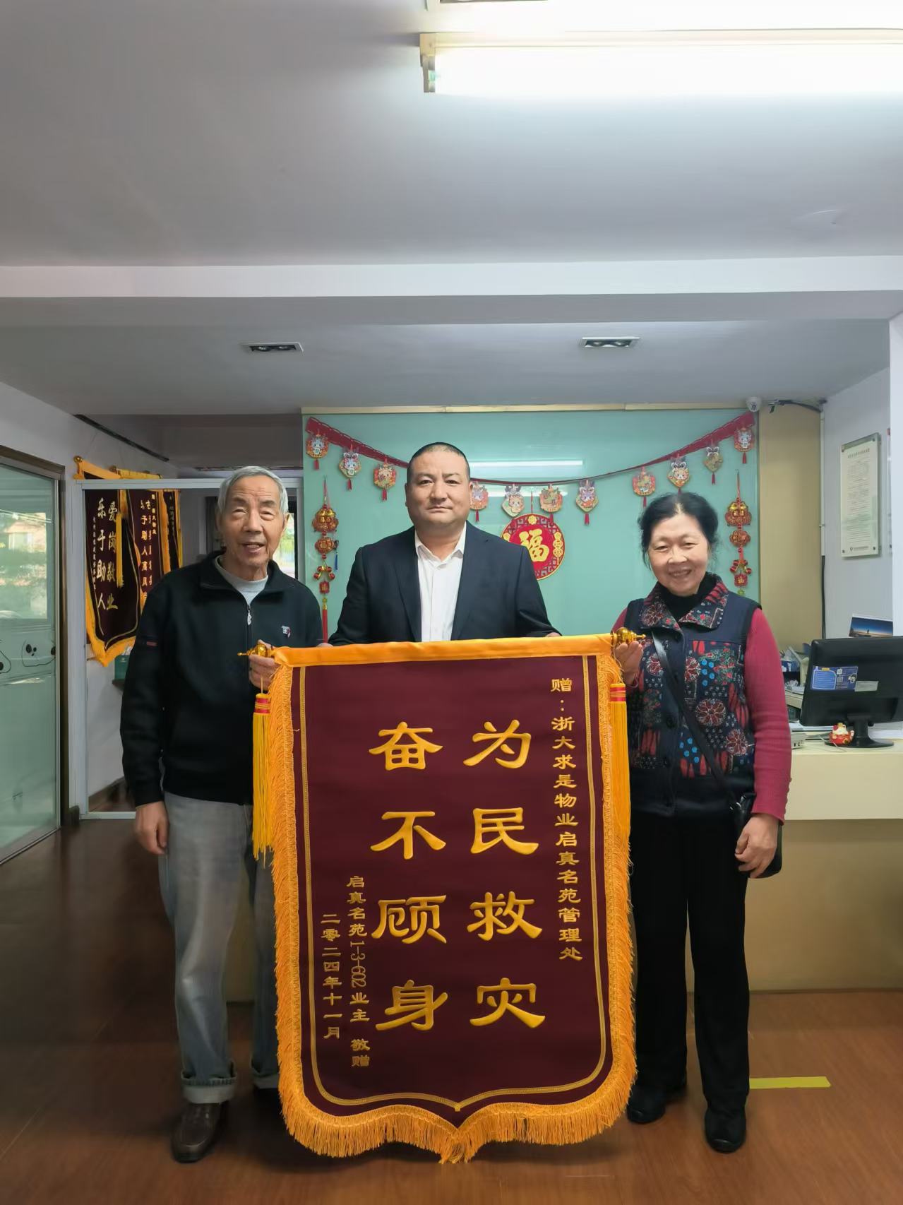 近日,求是物业家园服务中心启真名苑项目部收到一面锦旗。“奋不顾身、为民救灾”,表达了业主对物业员工不顾个人安危、全力扑救火情的感谢与赞扬。