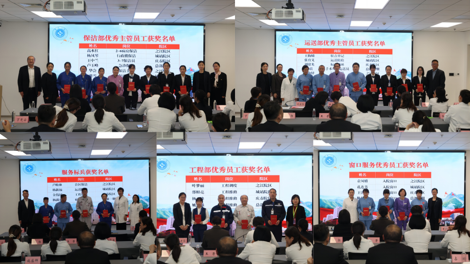 在表彰大会上,各院区充分结合员工表扬信、锦旗以及好人好事情况,评选出优秀员工、优秀主管和服务标兵28人。其中,分公司共有21名员工受到表彰。
