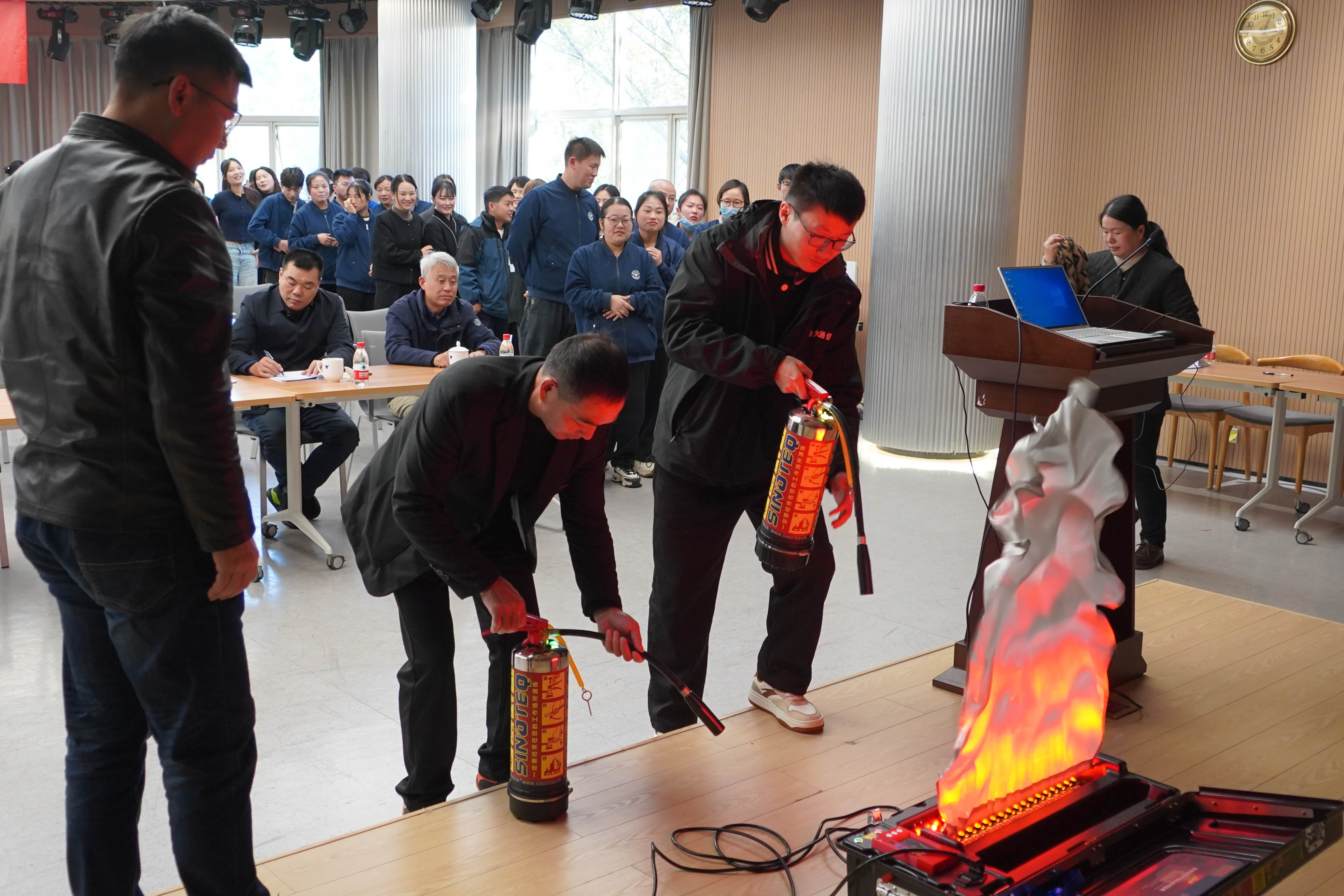 培训结束后,参训人员进行了灭火和应急疏散演练。通过实际操作,大家进一步掌握了灭火器的使用方法和应急疏散的正确步骤,增强了应对火灾的实战能力。