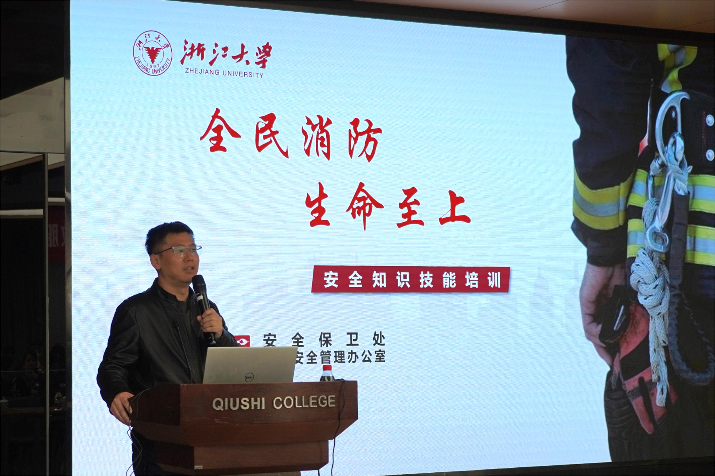 2024年11月9日是第33个全国消防日。学校将11月定为消防宣传月,今年的主题是“全民消防,生命至上”。为切实增强科教服务中心职工队伍消防安全意识,提高抵御火灾和应急处置能力,根据后勤集团《关于开展2024年冬季消防系列活动的通知》要求,11月26日下午,科教服务中心在紫金港校区举办了消防安全培训会暨灭火和应急疏散演练。培训邀请了学校安全保卫处消防安全管理办公室主任顾冬健做安全知识技能培训,中心安全监控领导小组、安全监控小组、各部门安全管理人员、安全网格员以及新进员工参加了本次培训。
