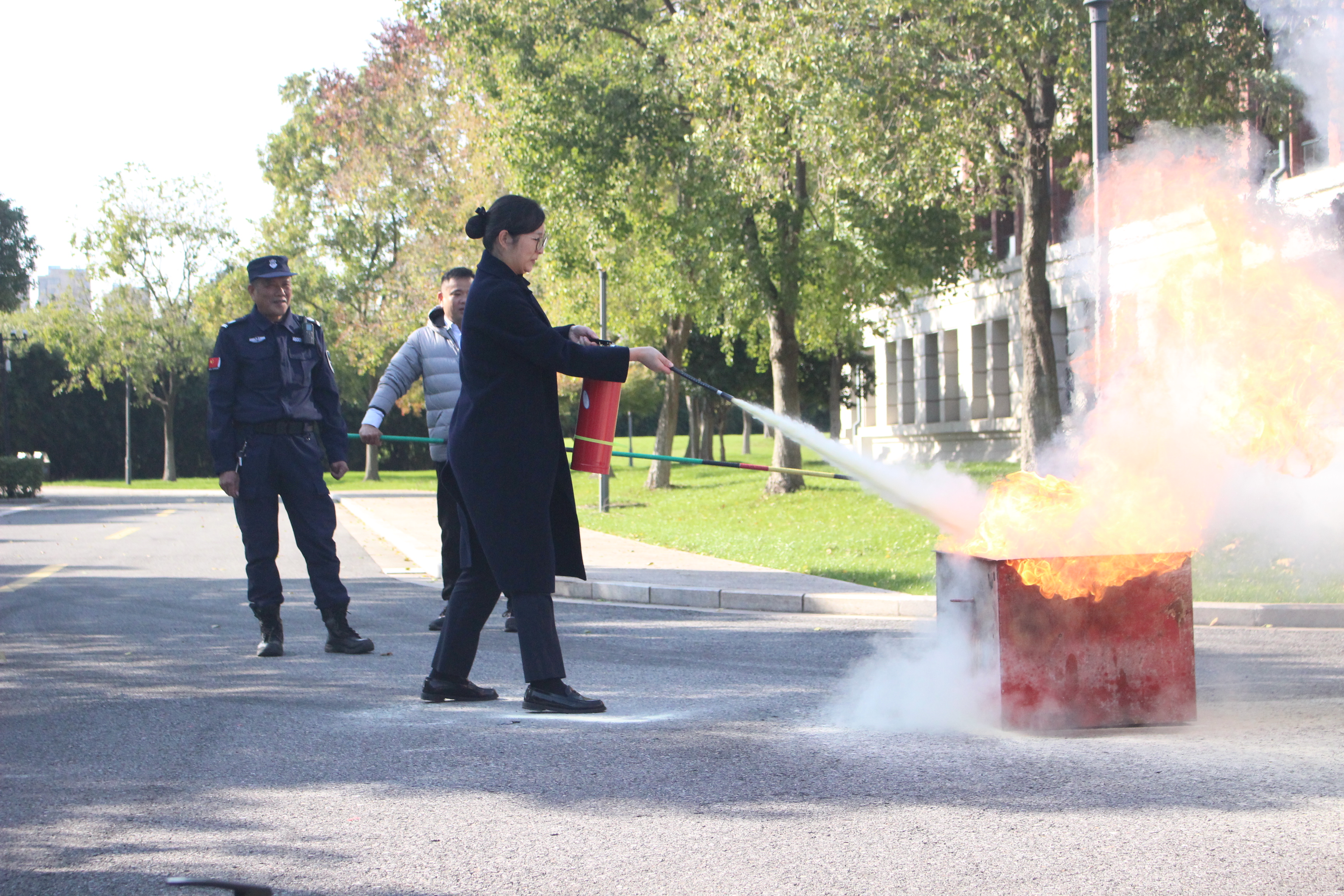 消防安全,人人有责。项目部积极配合校区,与海宁市消防联动,开展了一场消防宣传互动活动。在活动中,项目部安保队员指导师生体验模拟烟雾逃生、学习使用灭火器,有效提升自我保护能力,让安全意识深入人心。