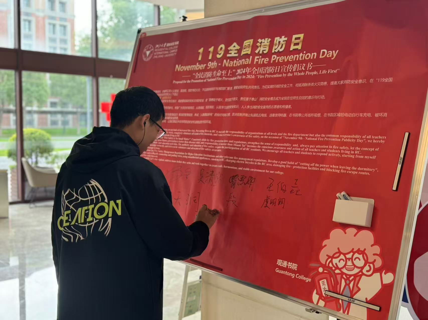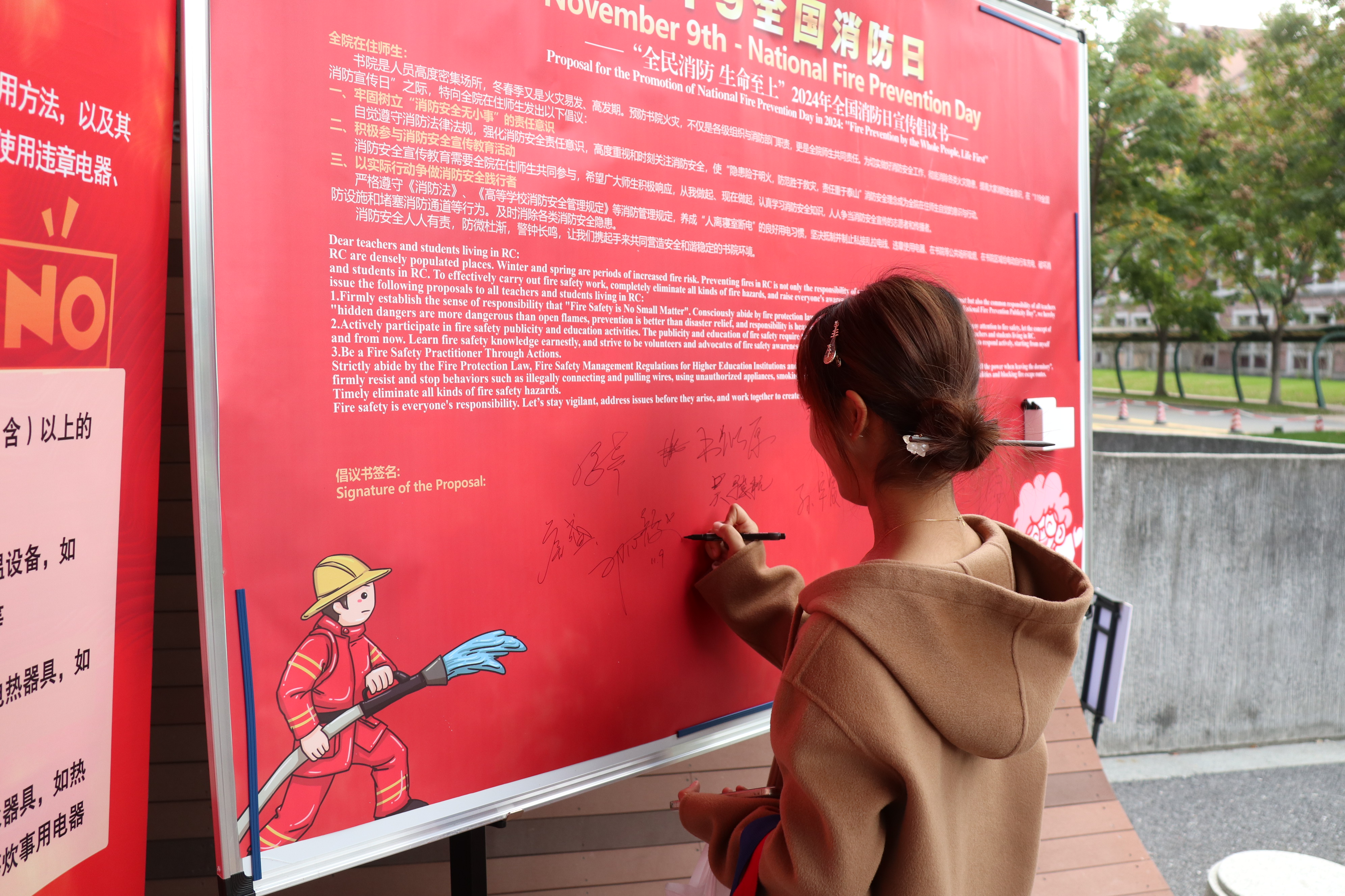 此外,在各个书院,项目部向全体师生发起倡议,邀请大家深入学习安全知识,签署“倡议书”,以实际行动参与校园安全工作,守护书院安全稳定。