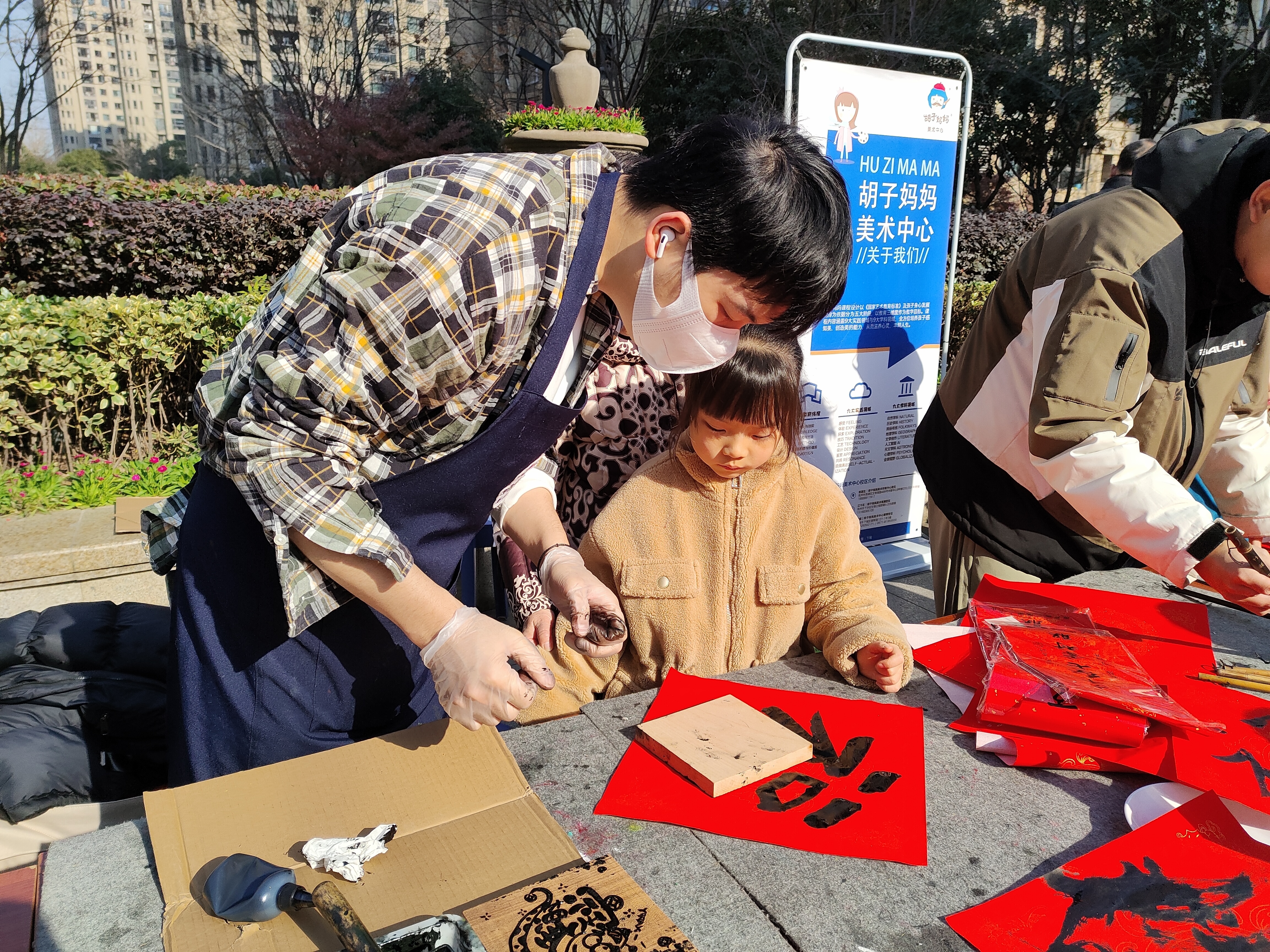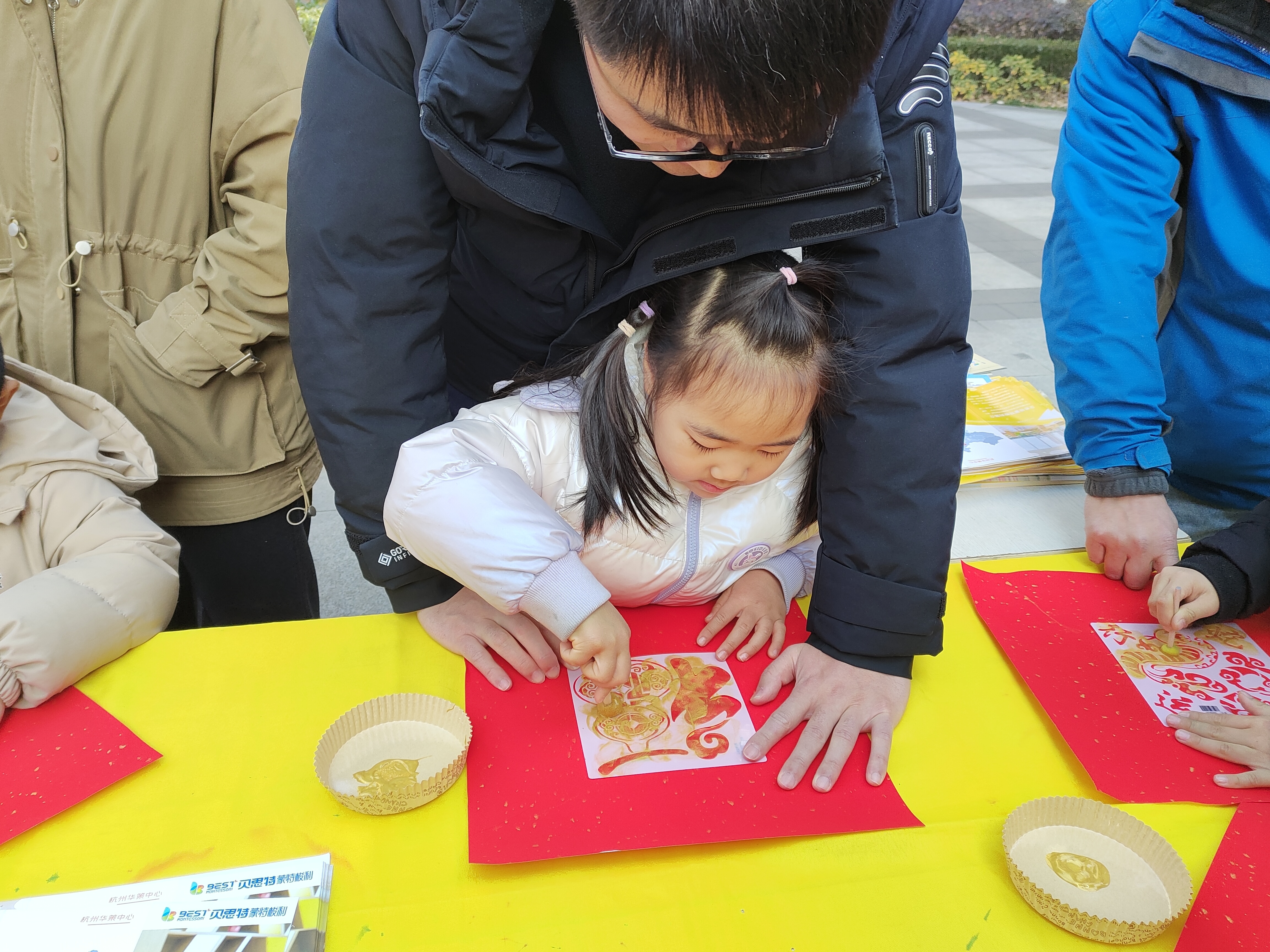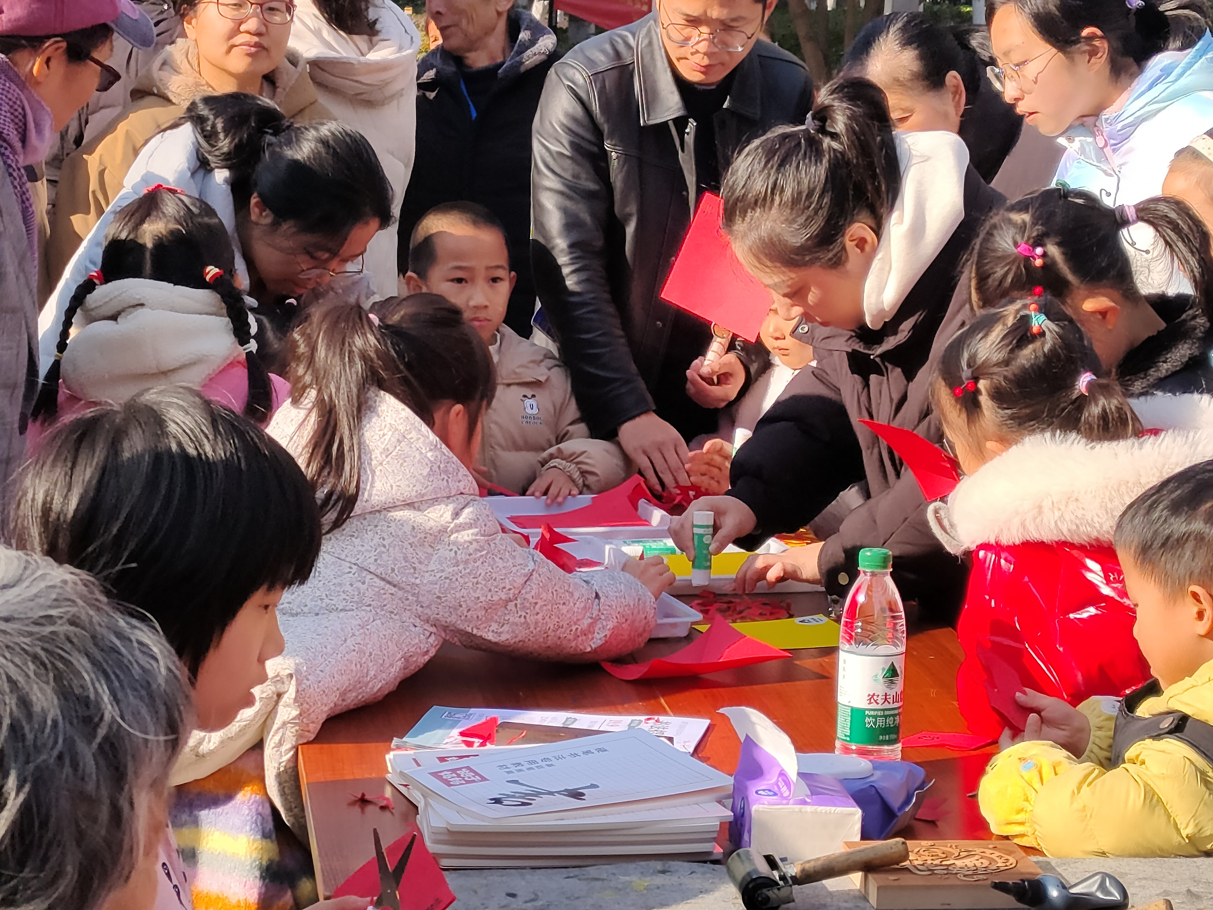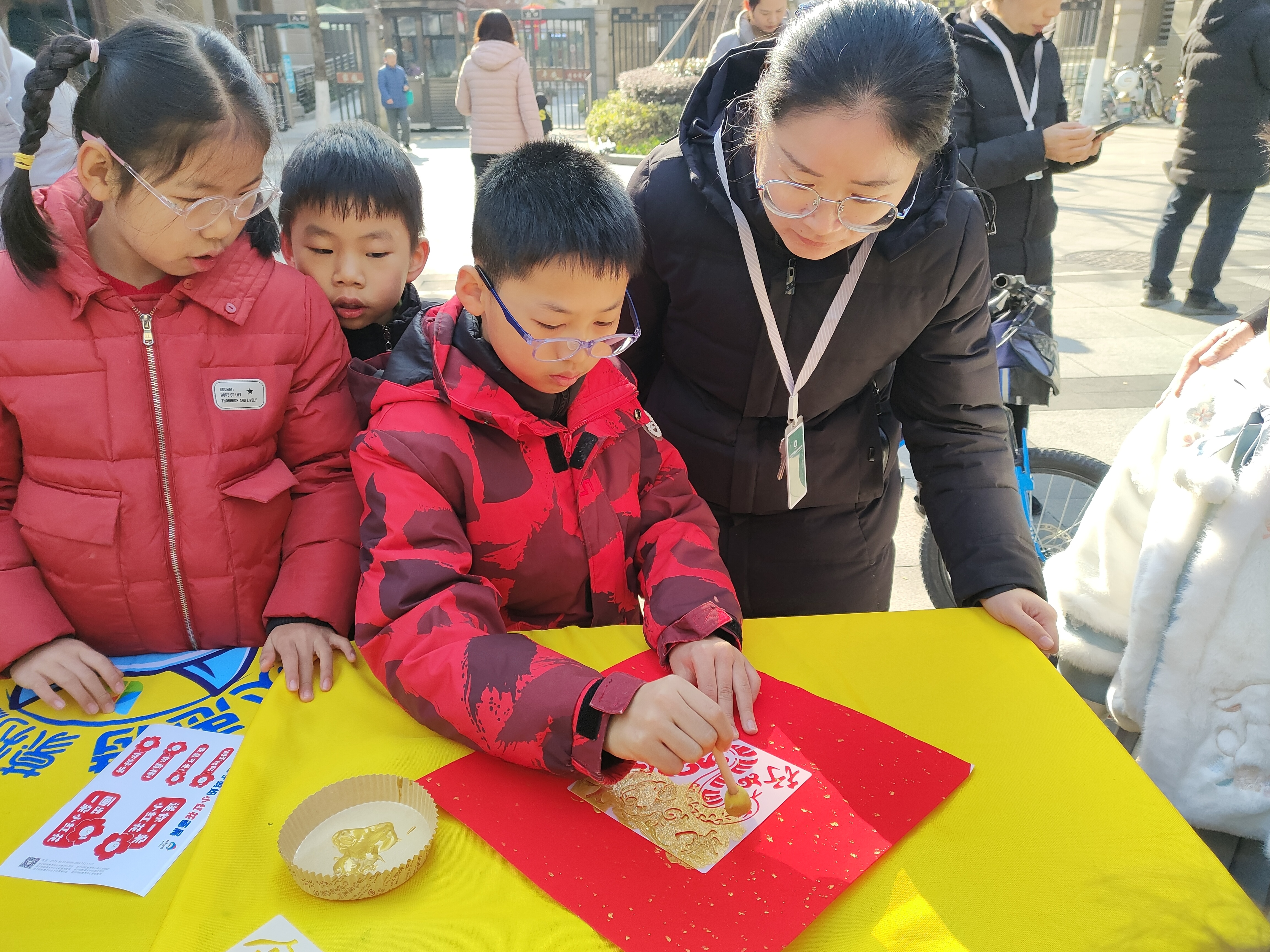 本次活动设计了写对联、写福字、剪纸、福字拓印、手工DIY新年装饰等多个项目,吸引了大量小业主及家长共同参与。