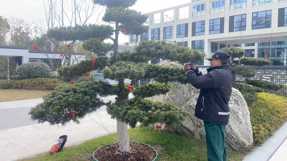 在求是物业人的精心装饰下,绿化景观“摇身一变”,纷纷换上了新年新装。